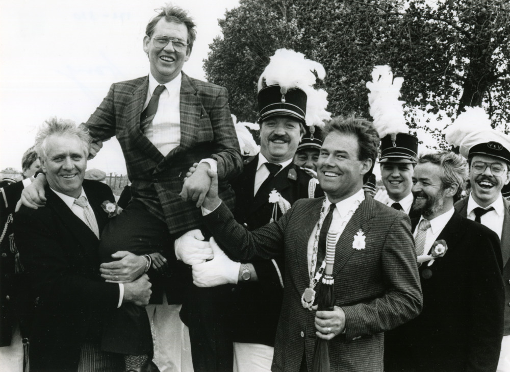 Zwart-wit foto van schutterskoning Theo Rieswijk in ...