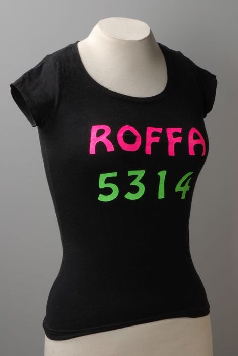 Zwart t-shirt, maat S, met in groene en roze letters...