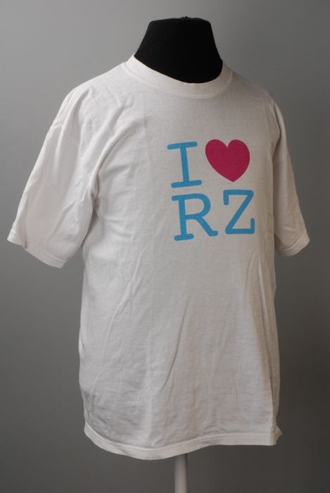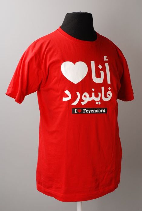 Wit t-shirt, maat L, 100% katoen, met opdruk in blau...