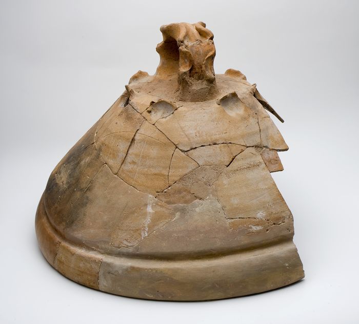 Fragment van rood aardewerken vuurstolp met rookgat,...