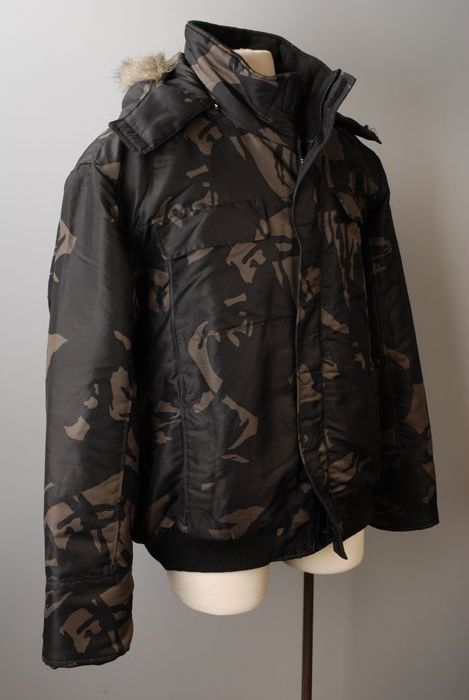 Jas in zwart en donkergroen met camouflage motief me...