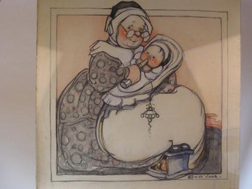 Grootmoeder geeft kleinkind de fles, gemengde techniek
