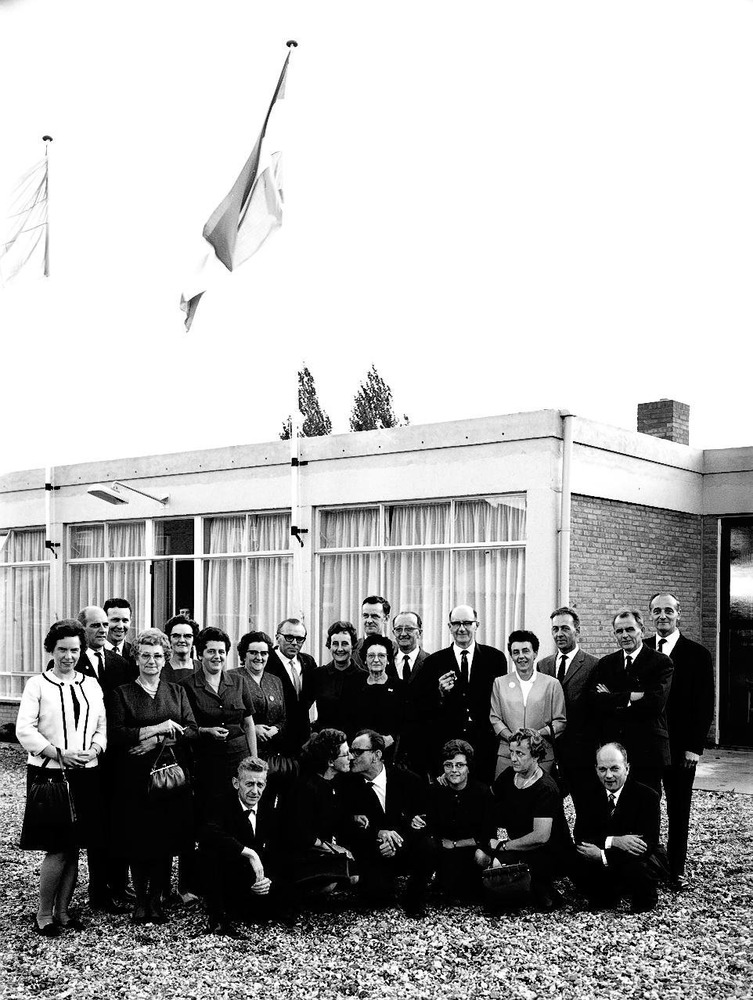 Kleurenfoto groep maanen en vrouwen middelbare leeft...