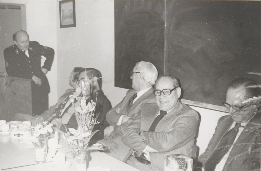 V.l.n.r.: man in uniform achter katheder, Wethouder ...