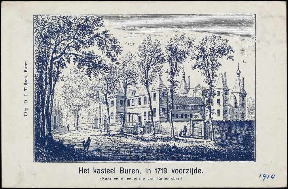 Het Kasteel Buren, in 1719 voorzijde. (Naar eene tee...