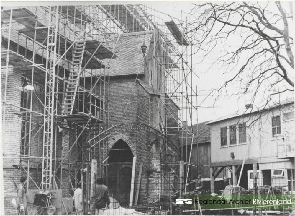 1980. Ned.Herv.Kerk in de steigers tijdens de restau...