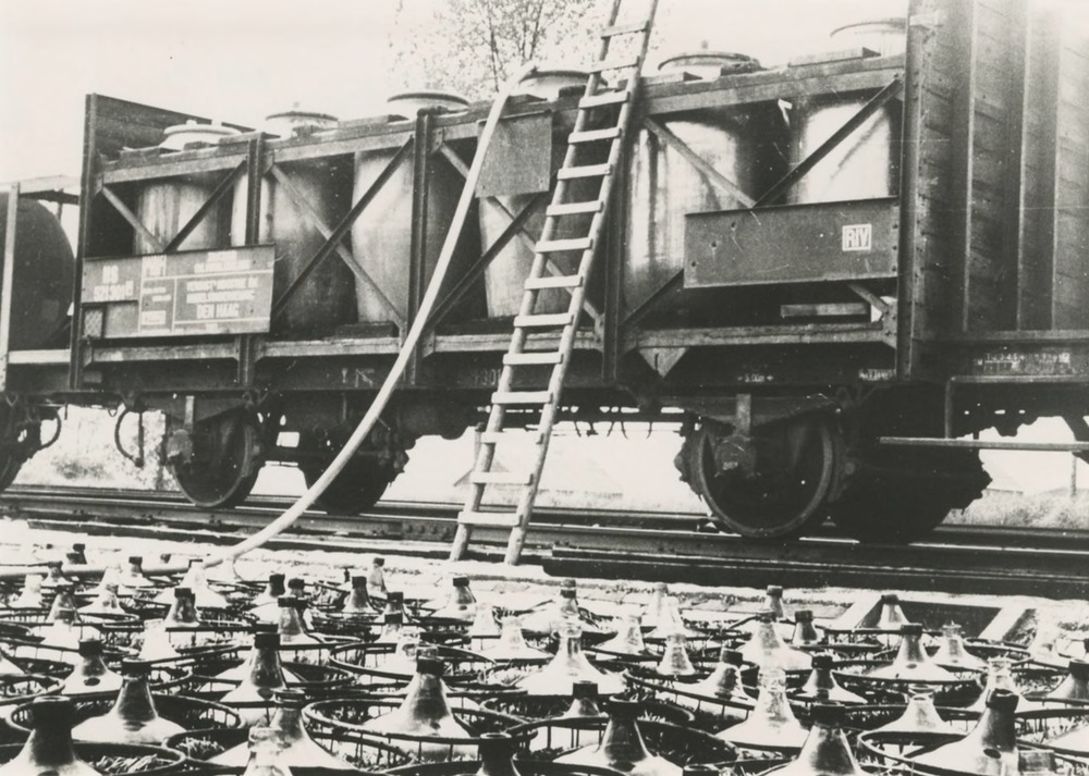 De mandflessen van de Fa. Verdugt worden gevuld door...