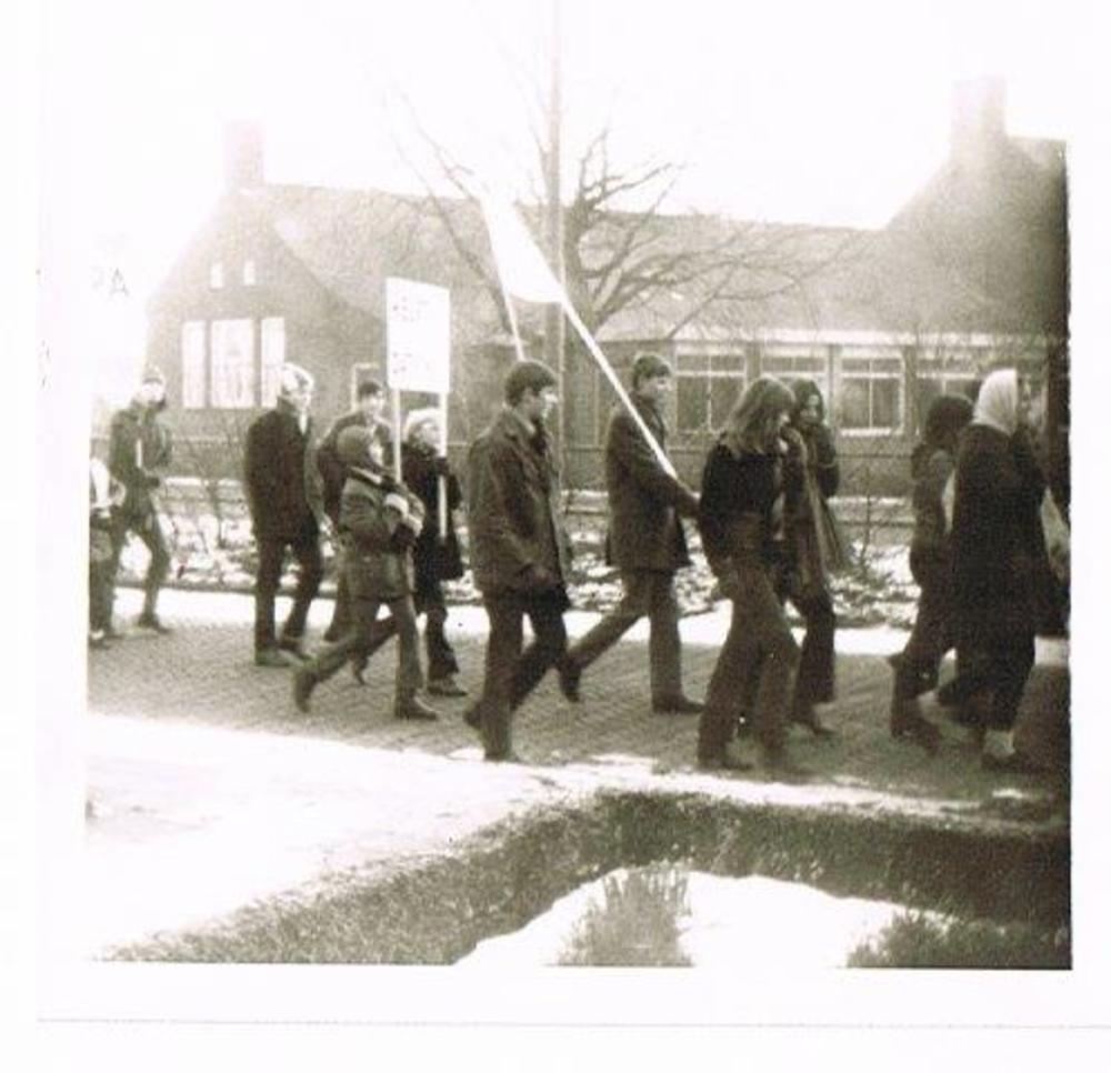 Groep scholieren lopen in de Oldenbarneveltstraat te...