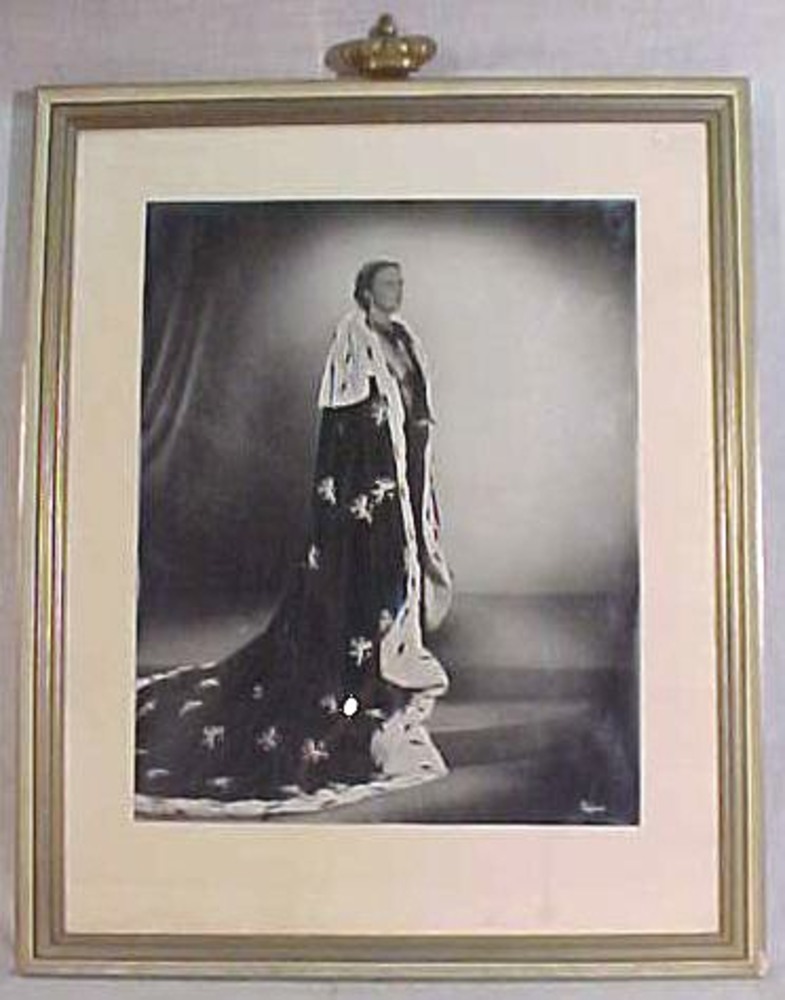 Staatsieportret Koningin Juliana. Gekleed in hermeli...
