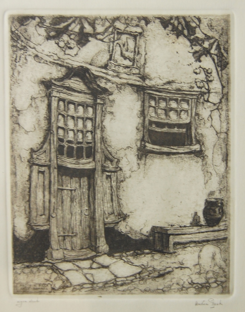 detail deur en raam huis te Zaltbommel, ets Anton F....