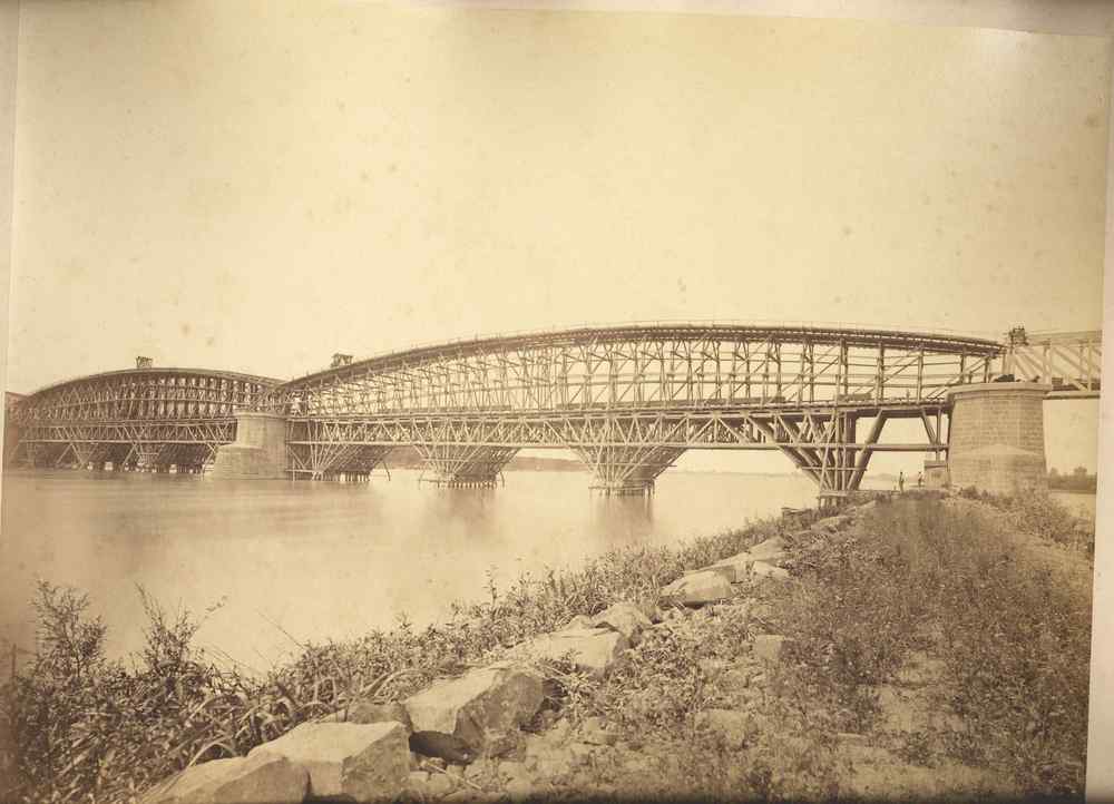 Spoorbrug bij Zaltbommel in aanbouw