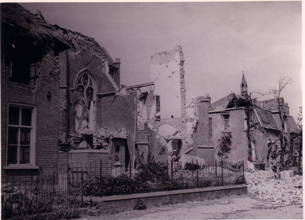 Verwoeste huizen en R.K.Kerk te Alem.