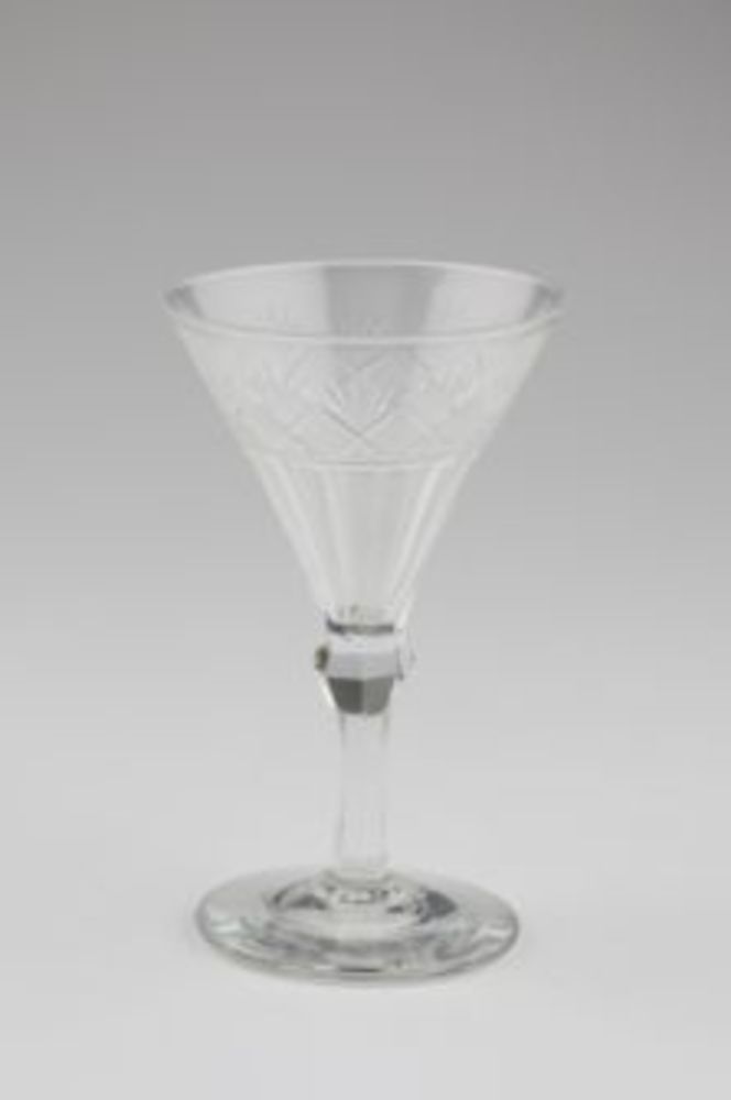 Borrelglaasje met geslepen bladmotief op zilveren vo...