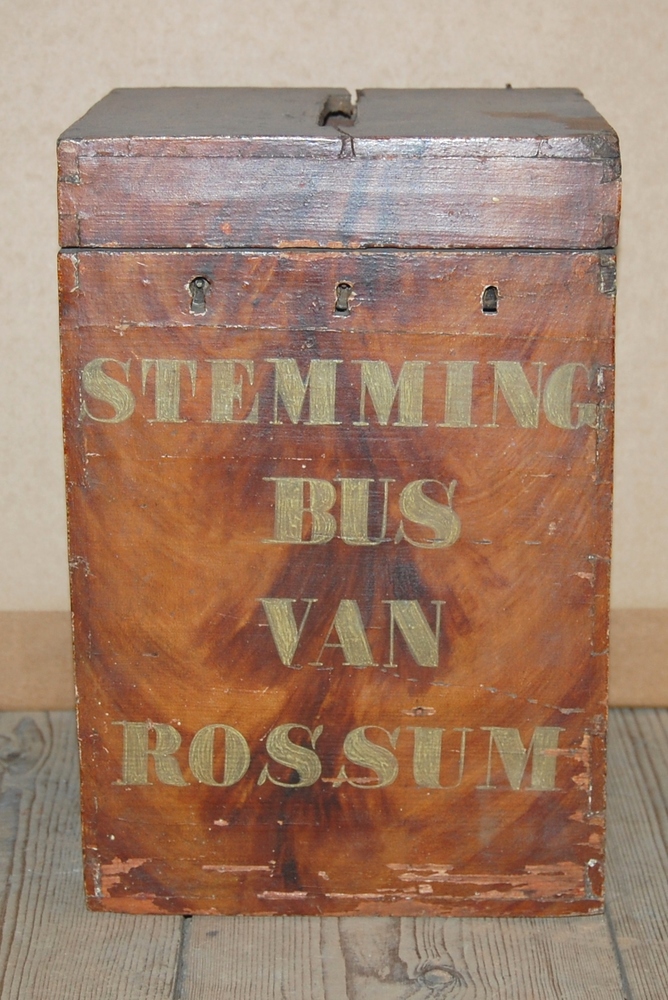 stembus van Rossum. Rechthoekig mahoniehouten geverf...