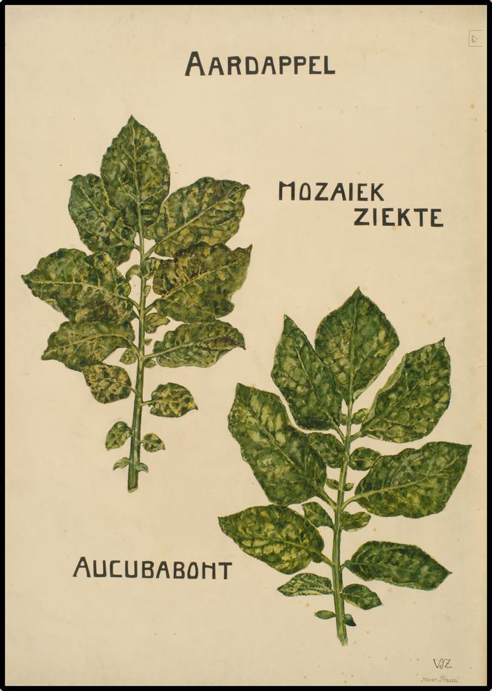 Aardappelblad aangetast door mozaiekziekte en aucuba...
