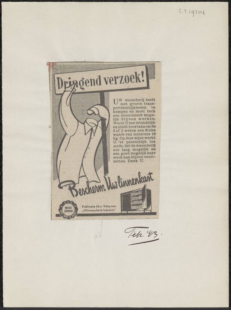 Vel met opgeplakte advertentie: "Dringend verzoek!" ...