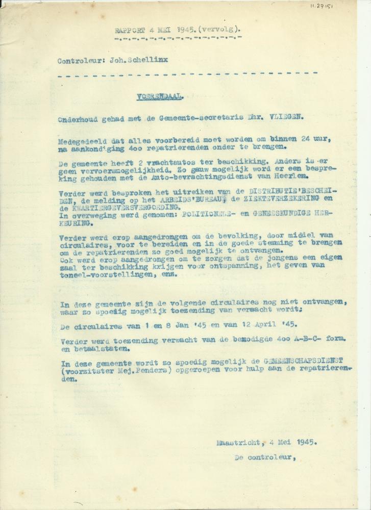 Rapport 4 mei 1945 bezoek Voerendaal door J. Schellinx