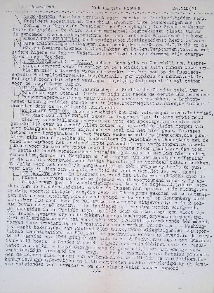 Het Laatste Nieuws, no 115, Woensdag 21 Februari 1945