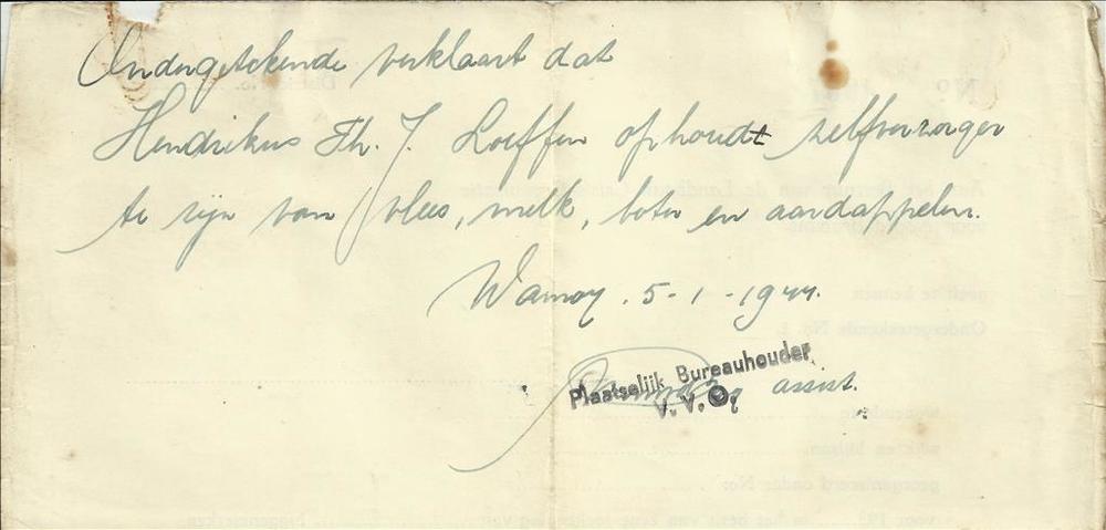 Verklaring van de plaatselijke bureauhouder te Wanro...