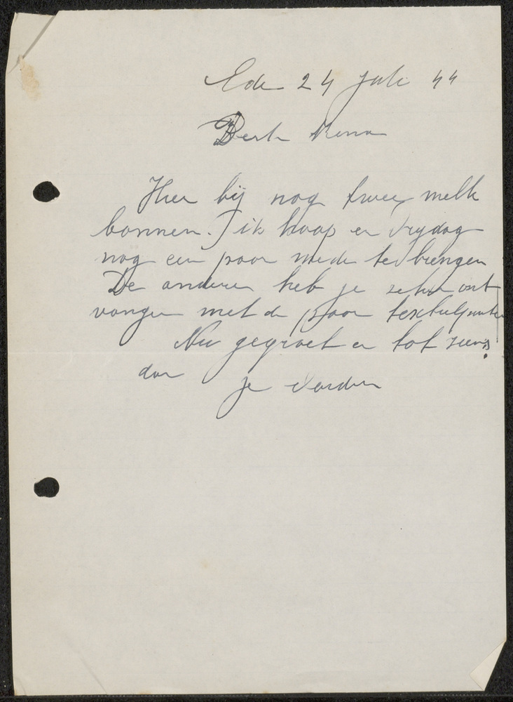 Brief aan Hubert van oom, tante, Gottlieb, Rosie dd ...