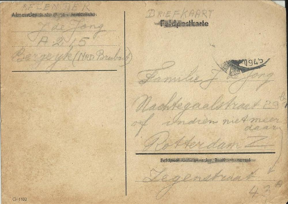 briefkaart van J. de Jong uit Bergeijk aan de famili...