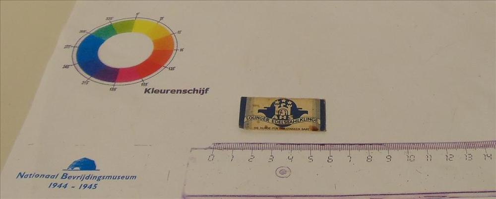 scheermesje in papieren wikkel van het merk AHS