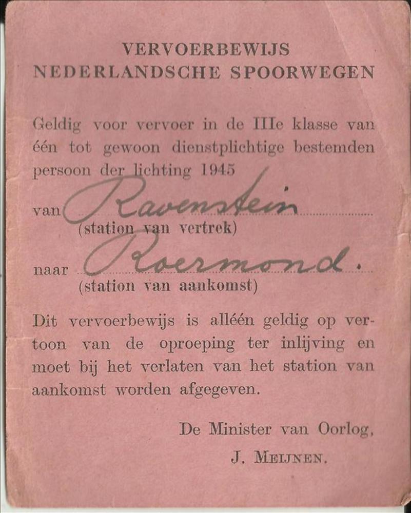 Vervoersbewijs Nederlandsche Spoorwegen