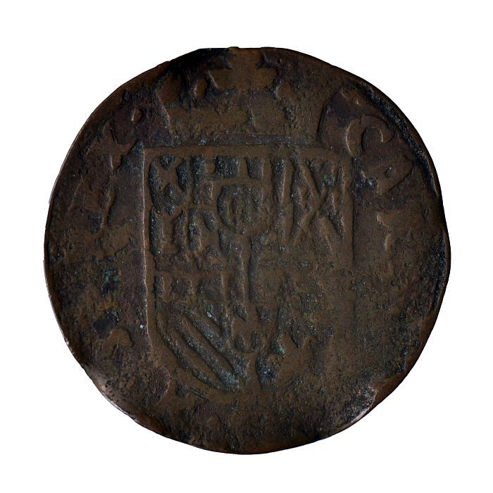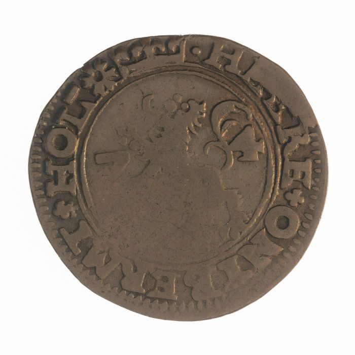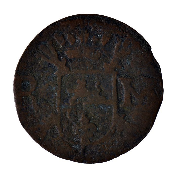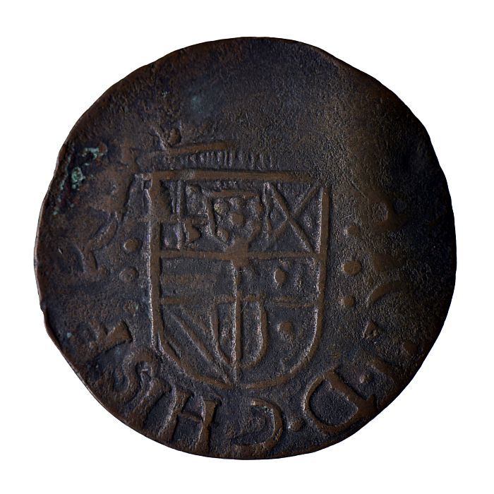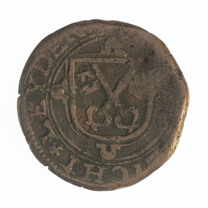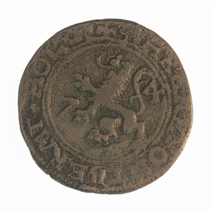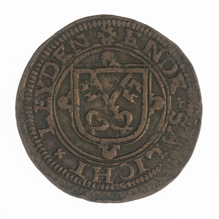 Koperen noodmunt, halve stuiver, Leiden, 1574