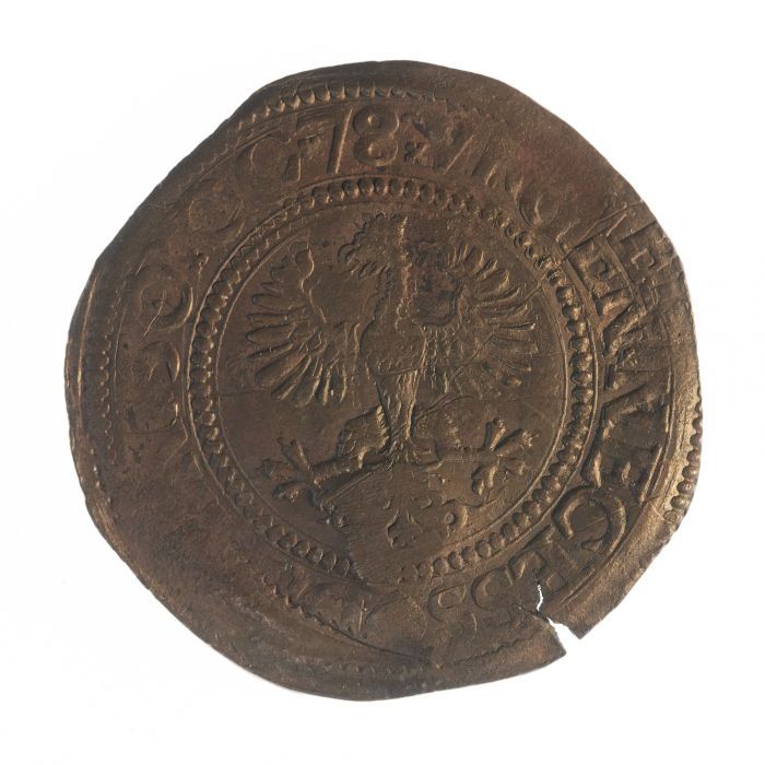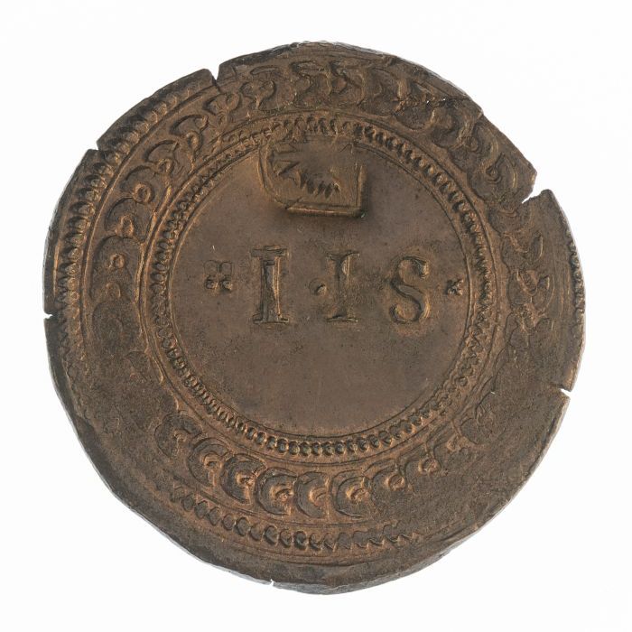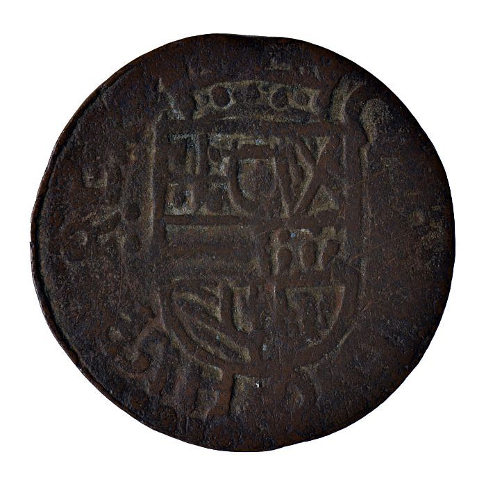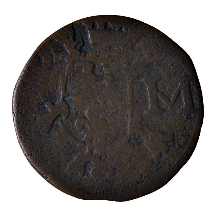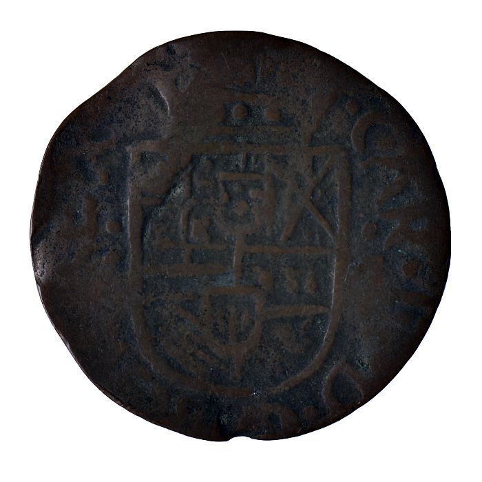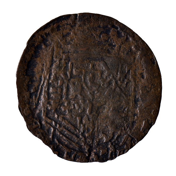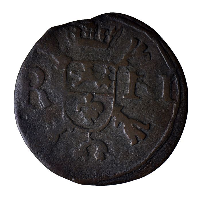 Koperen noodmunt, halve stuiver, Leiden, 1574