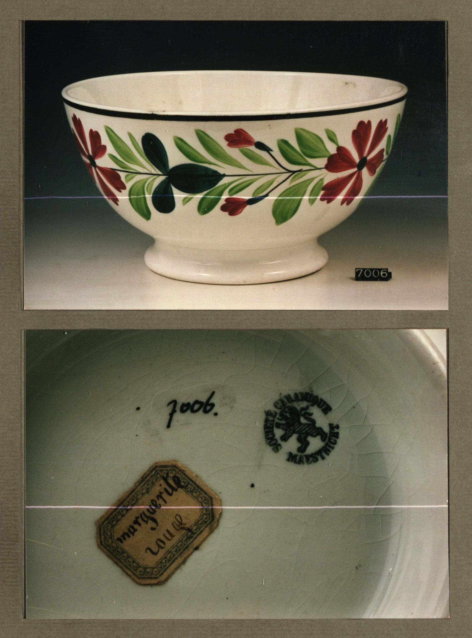 Spoelkom, model Hollandaise met decor Marguerite rood