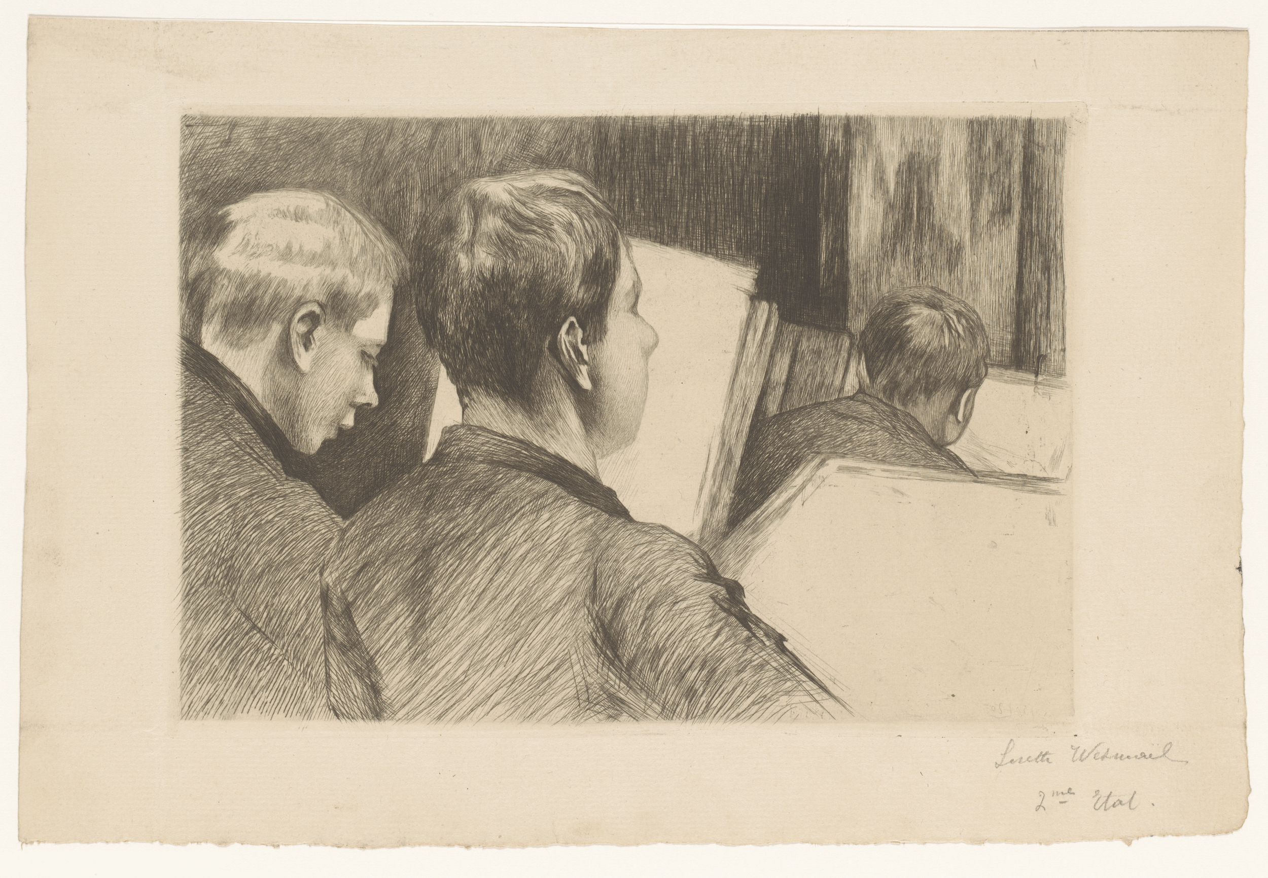 Studieblad met drie figuren