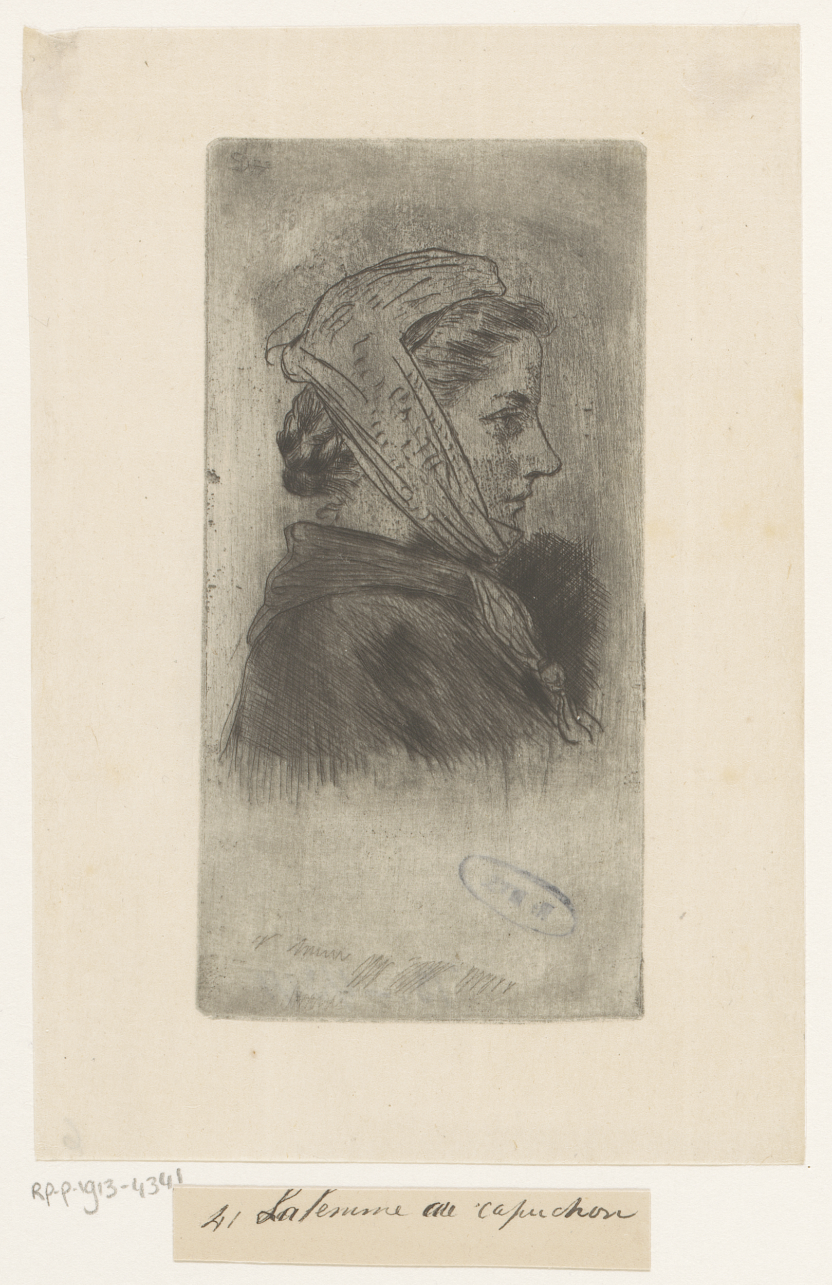 Hoofd van een vrouw met muts