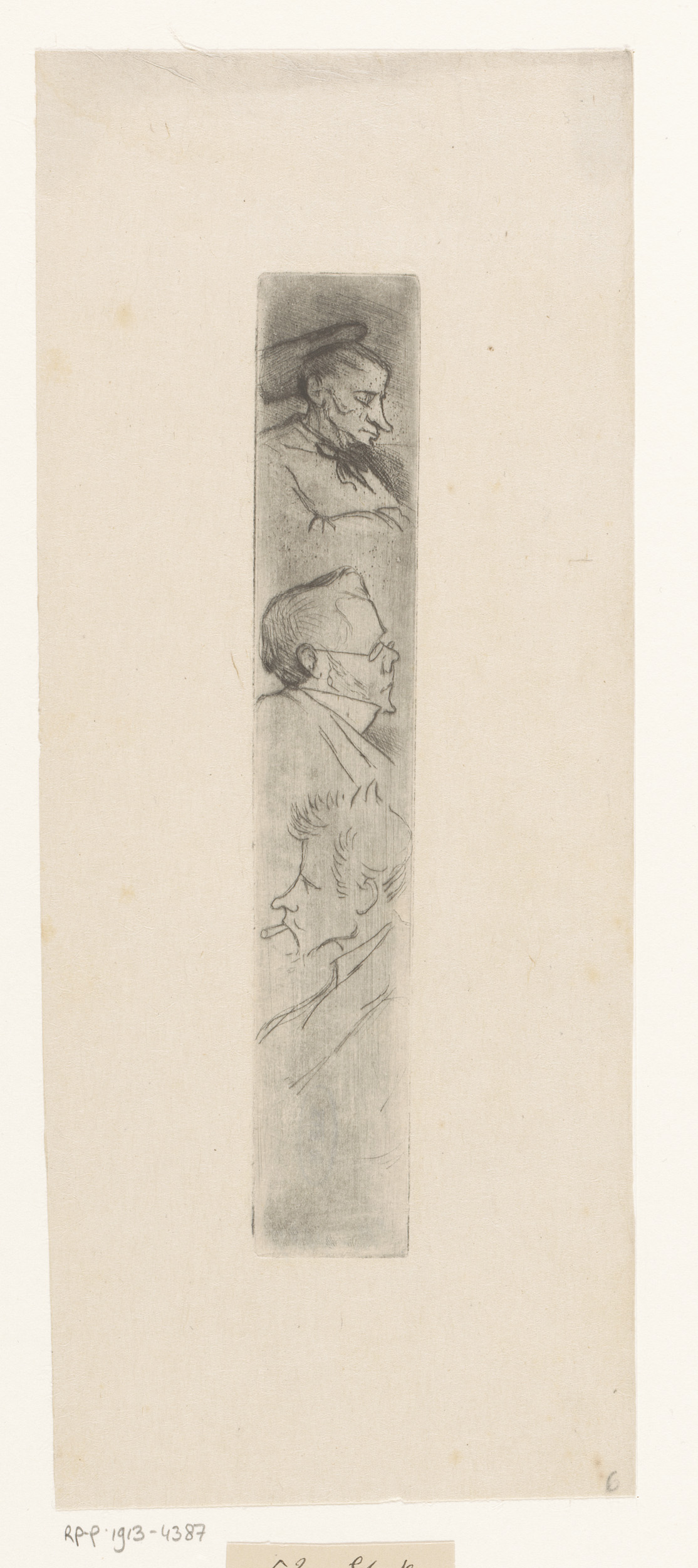 Studieblad met een mannen- en twee vrouwenhoofden