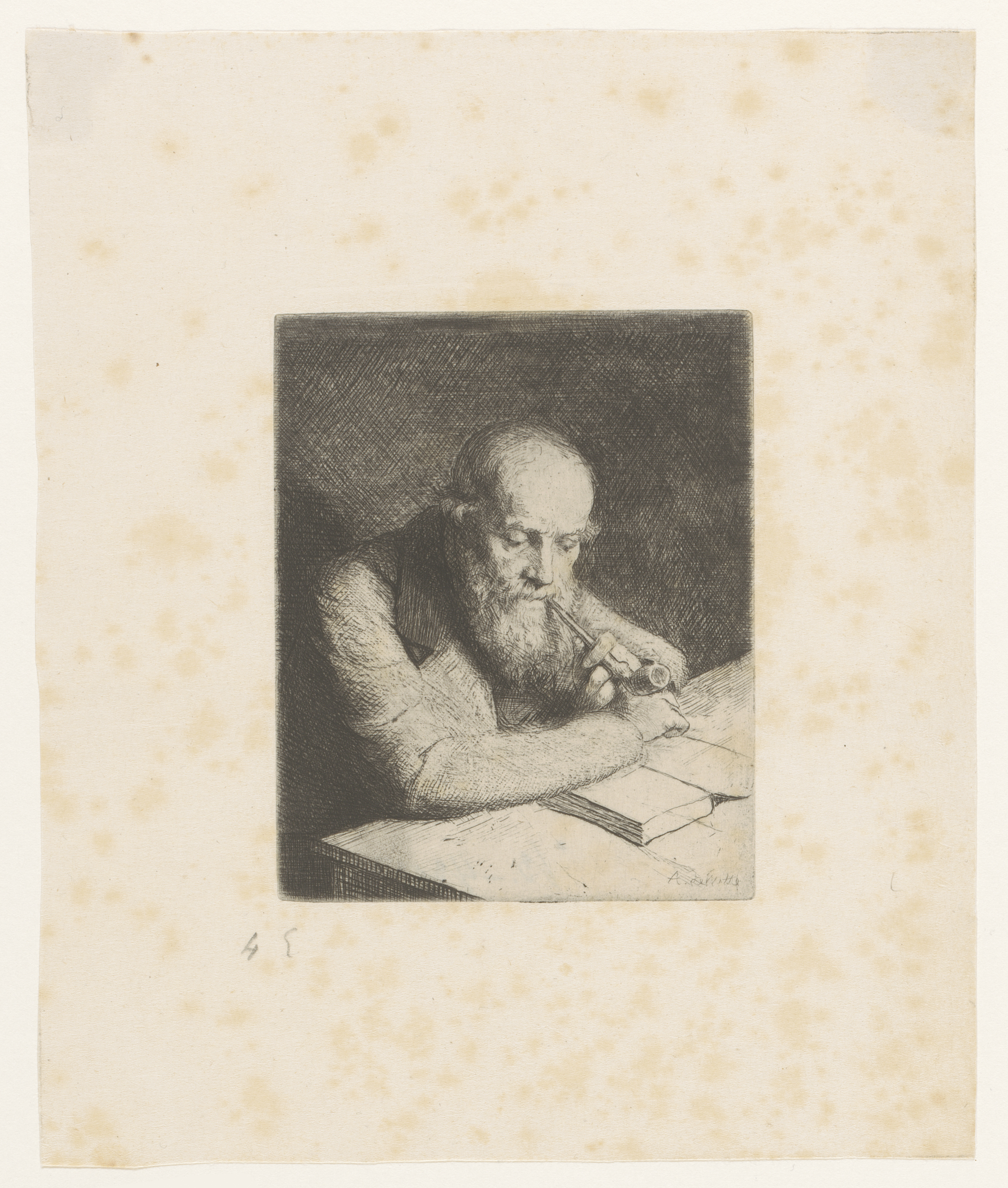 Pijprokende oude man met boek
