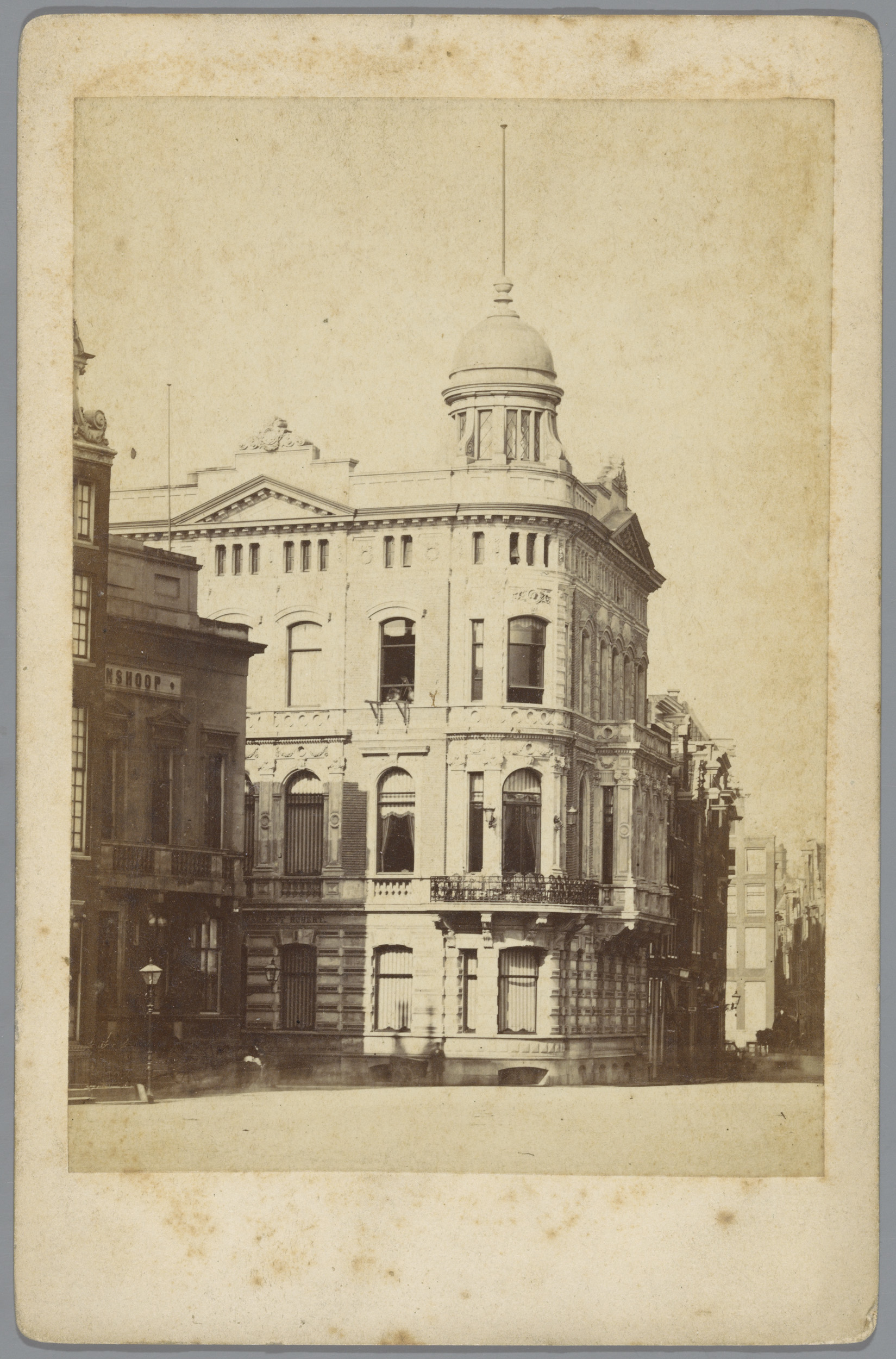 Gezicht op het Oudezijds Heerenlogement in Amsterdam