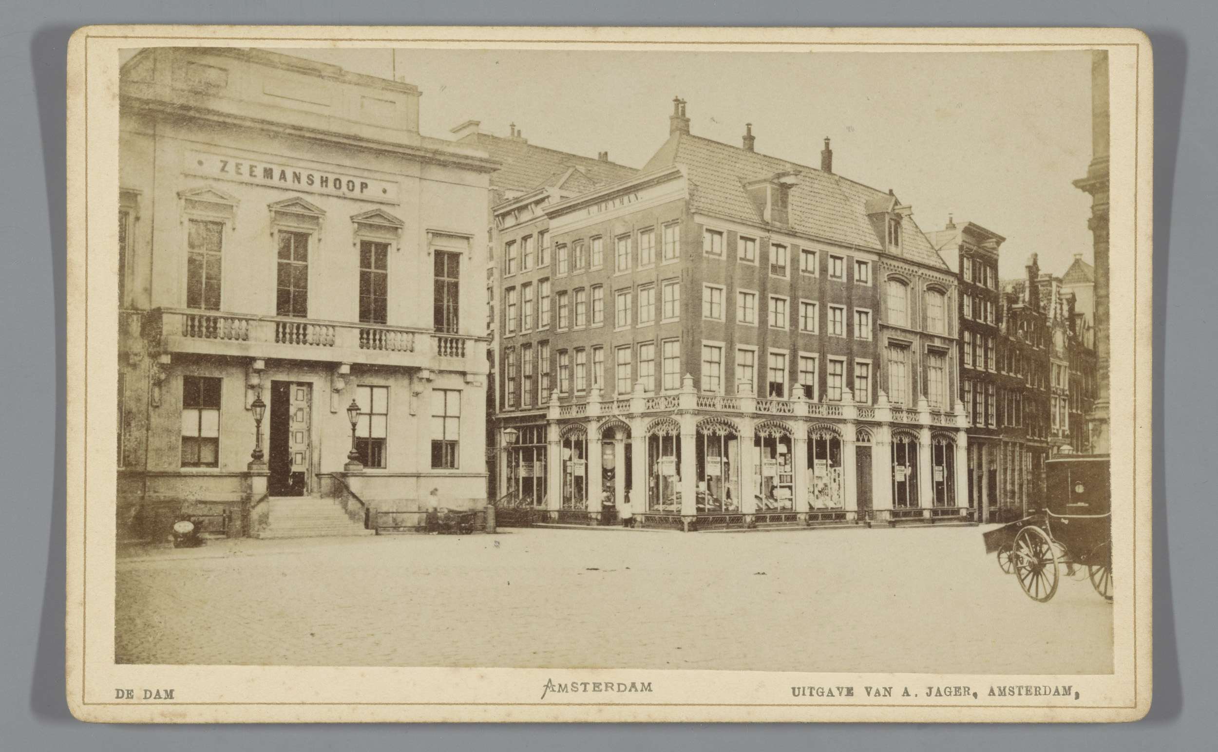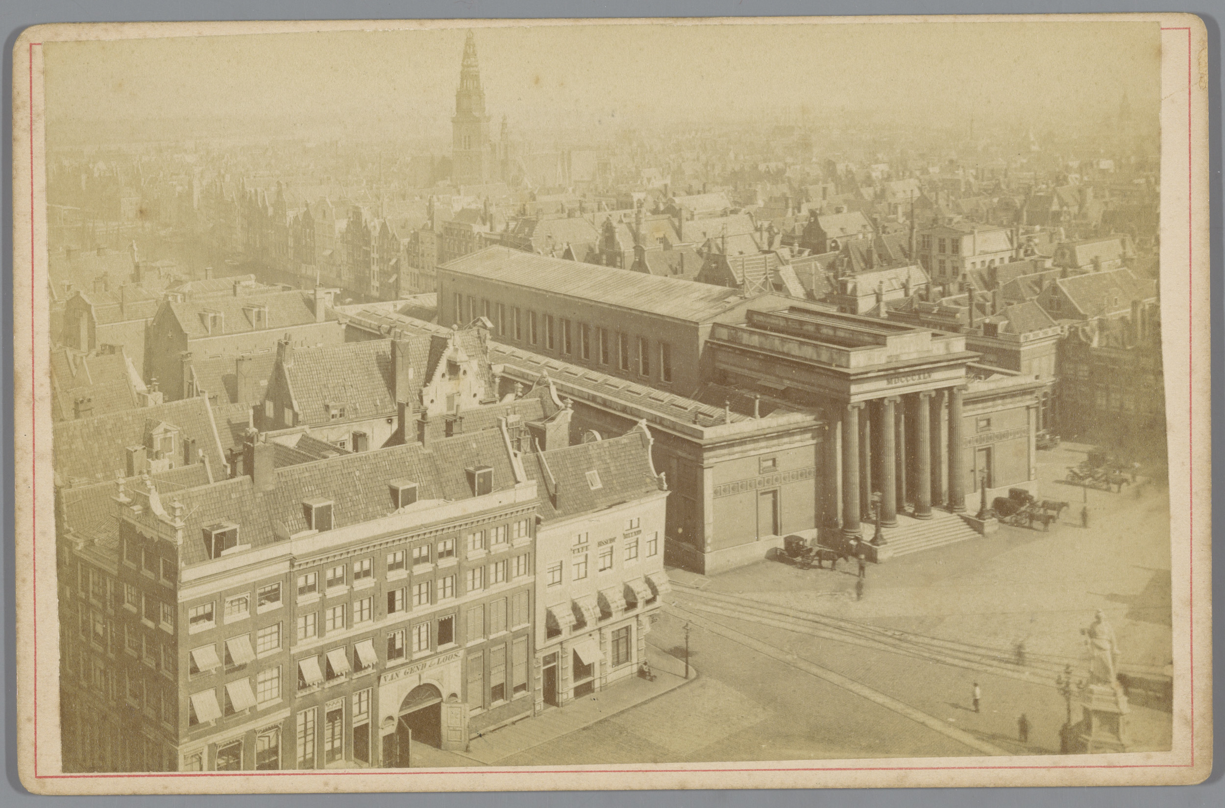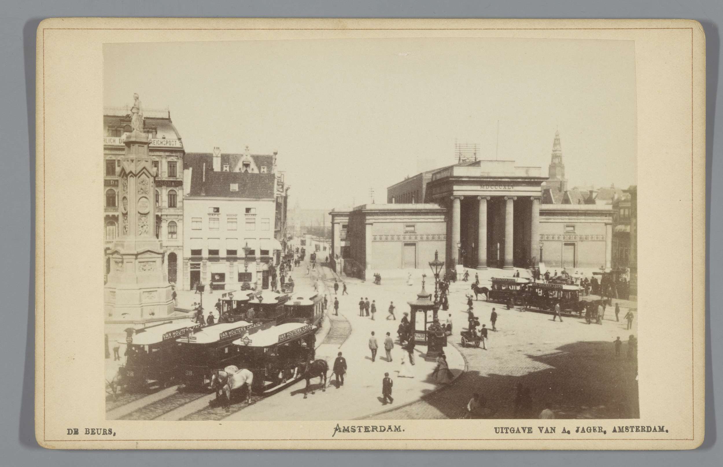 Gezicht op het Damrak en de Korenbeurs in Amsterdam
