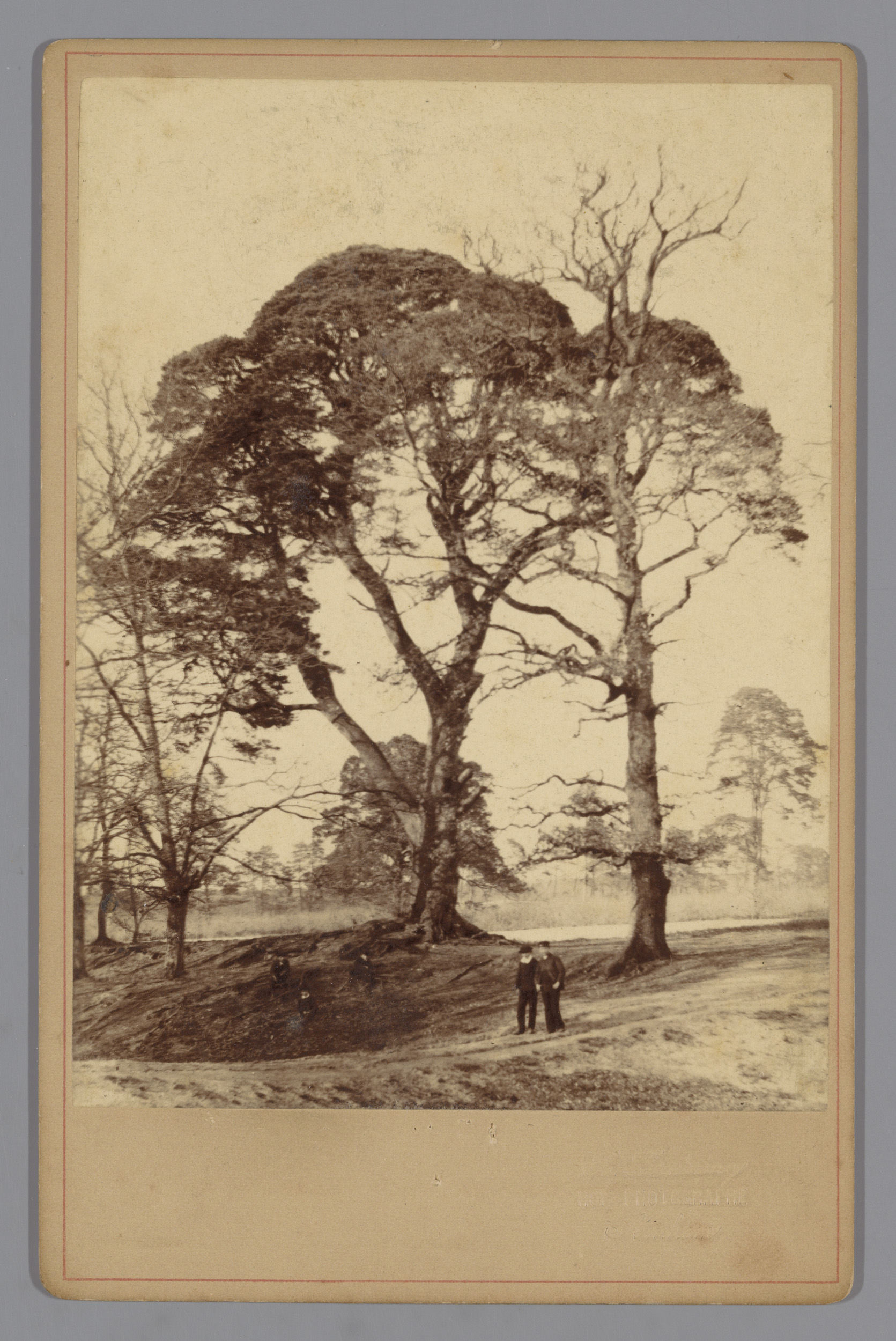 Twee personen voor de Duizendjarige den te Wolfheze