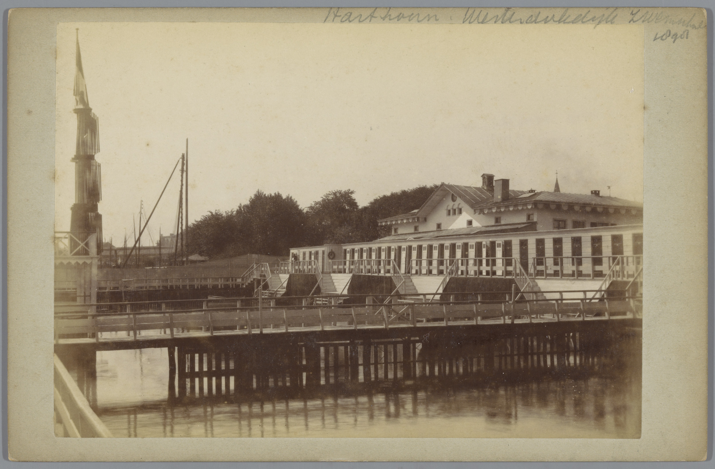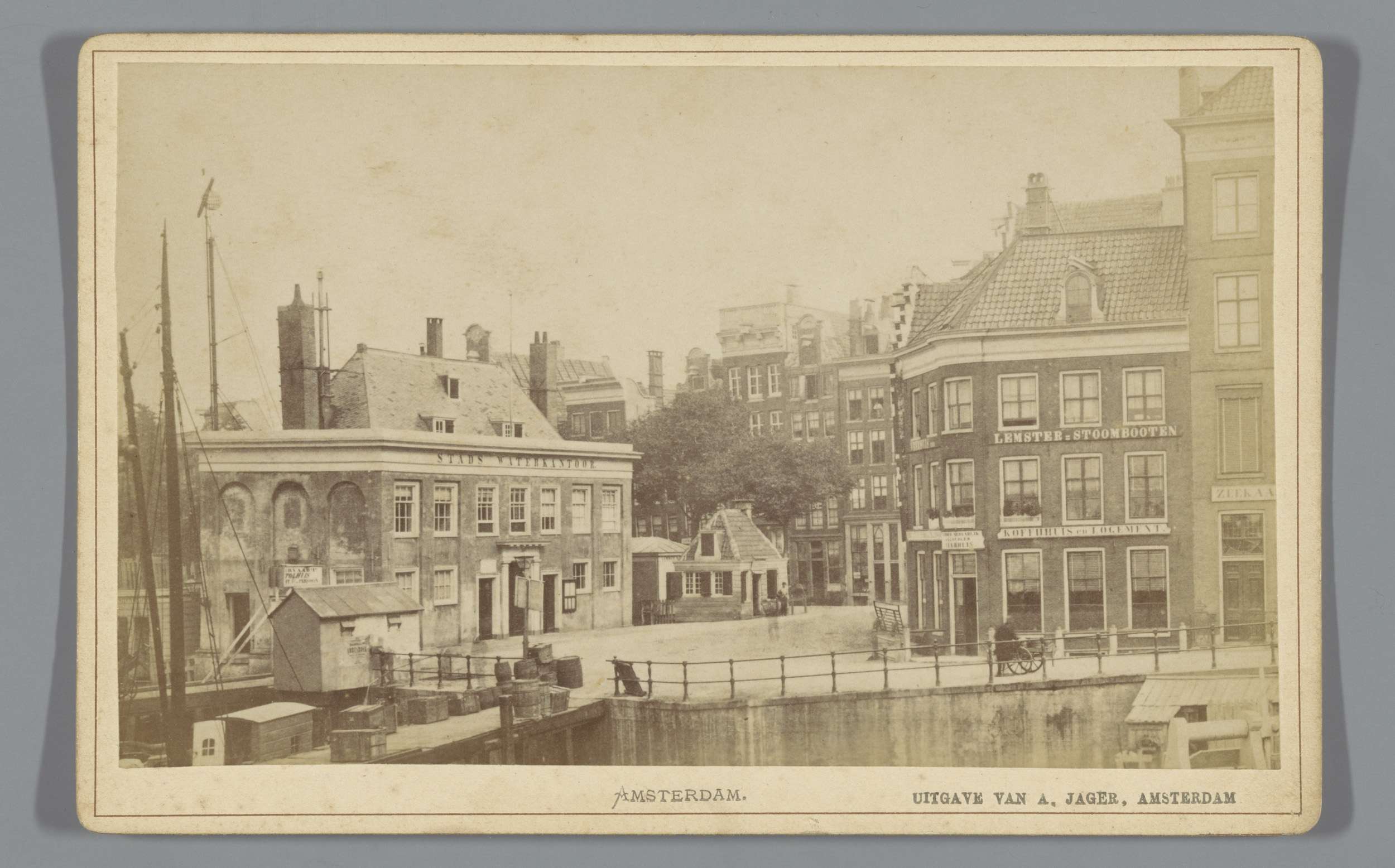 Gezicht op de Nieuwe Stadsherberg en haven van het I...