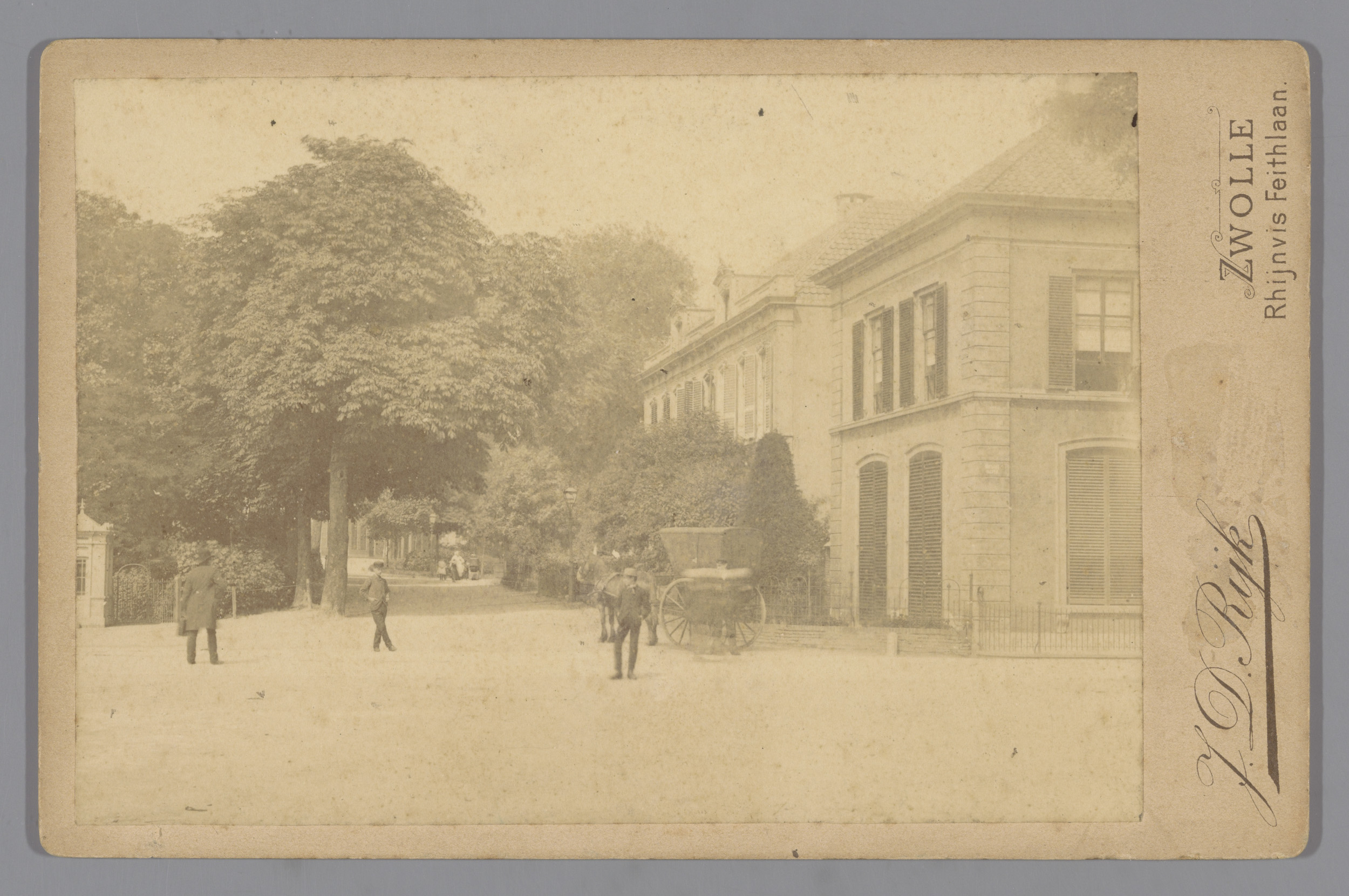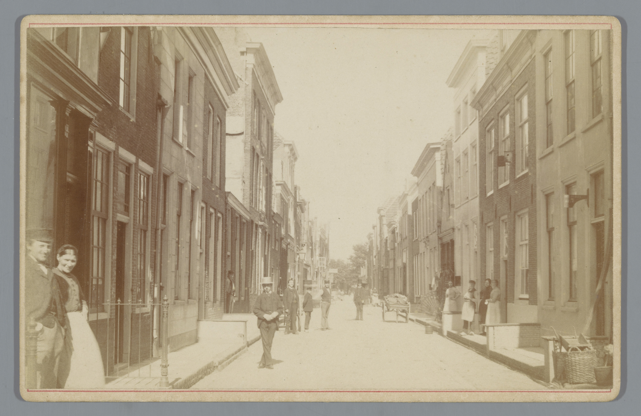 Gezicht op een straat in Zwolle met een kapkar en ma...