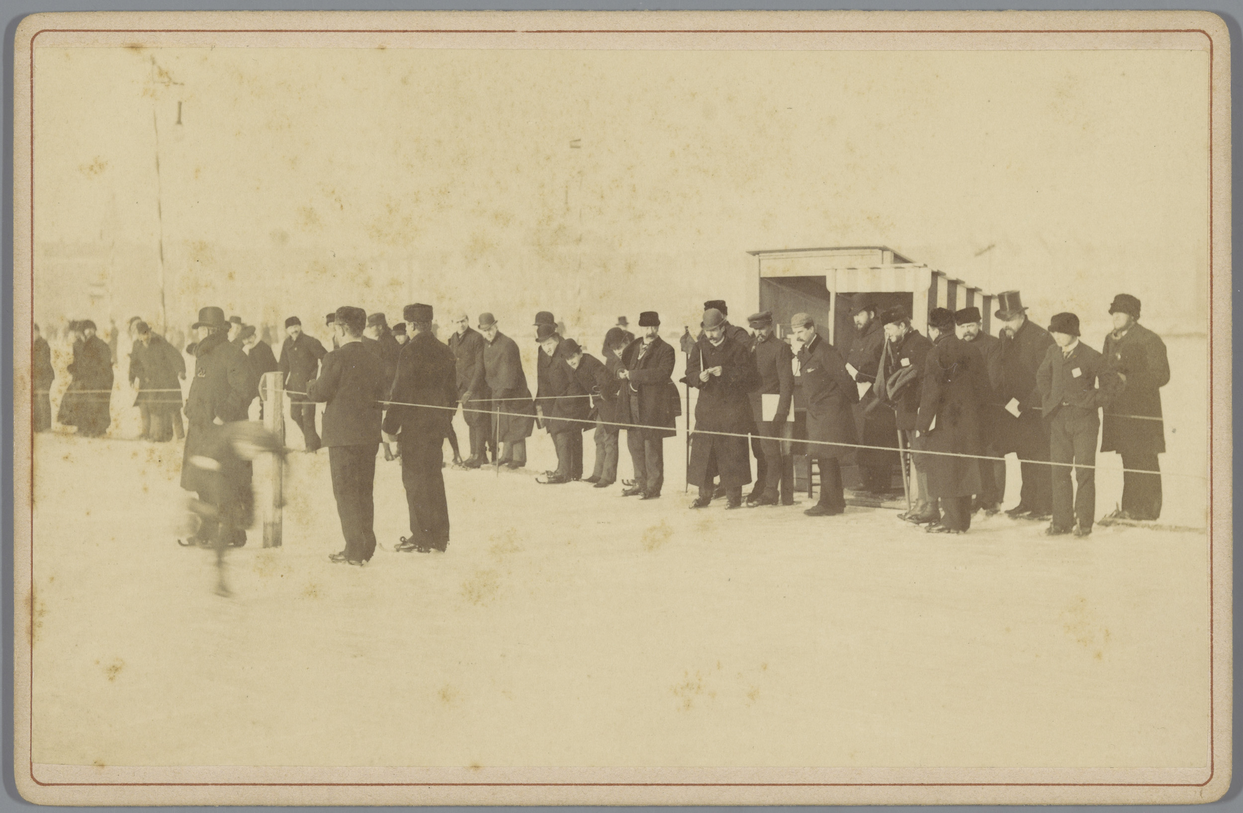 Groep mannen langs de baan van de Amsterdamse IJsclub