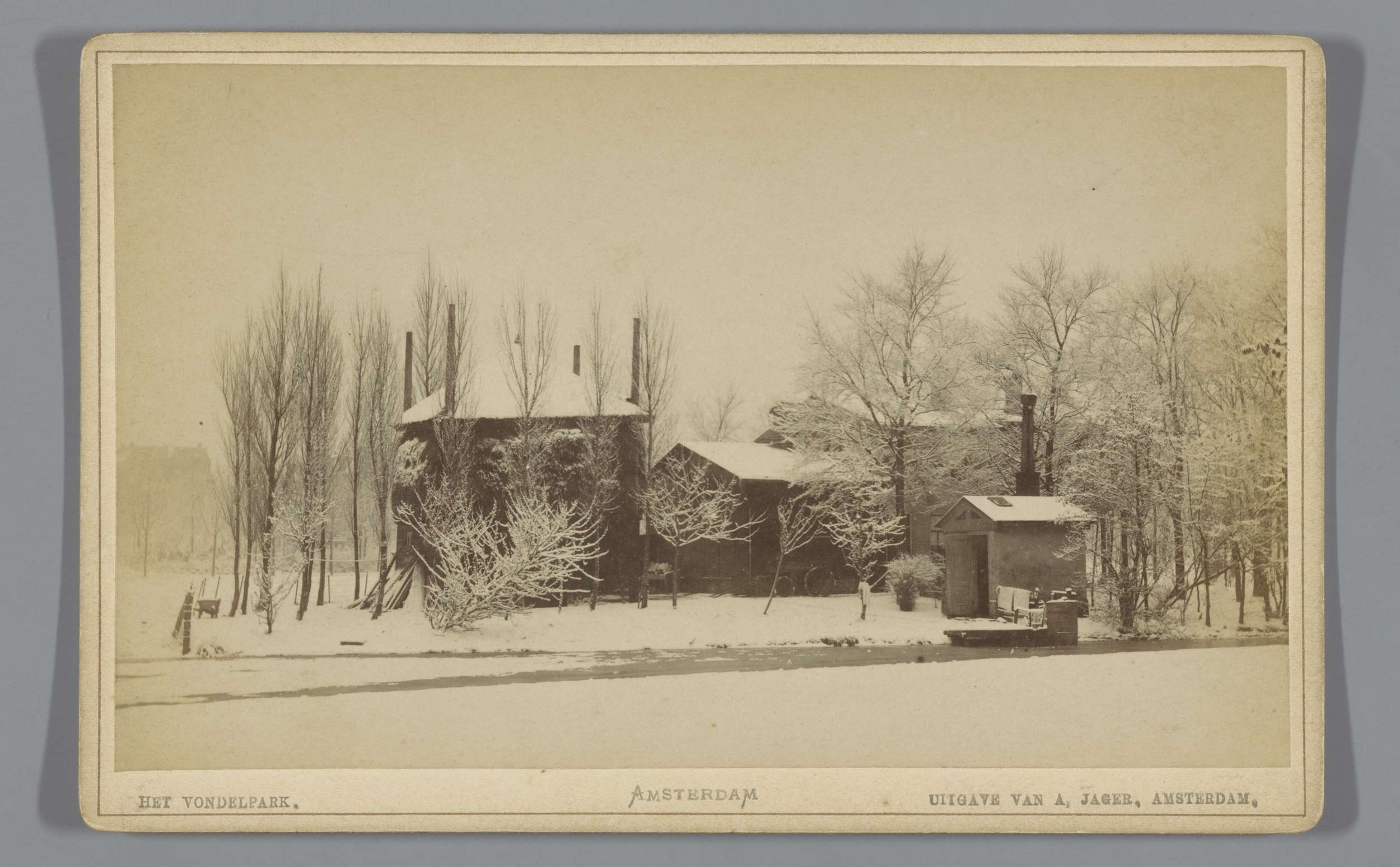 Gezicht op het Vondelpark in Amsterdam in de sneeuw