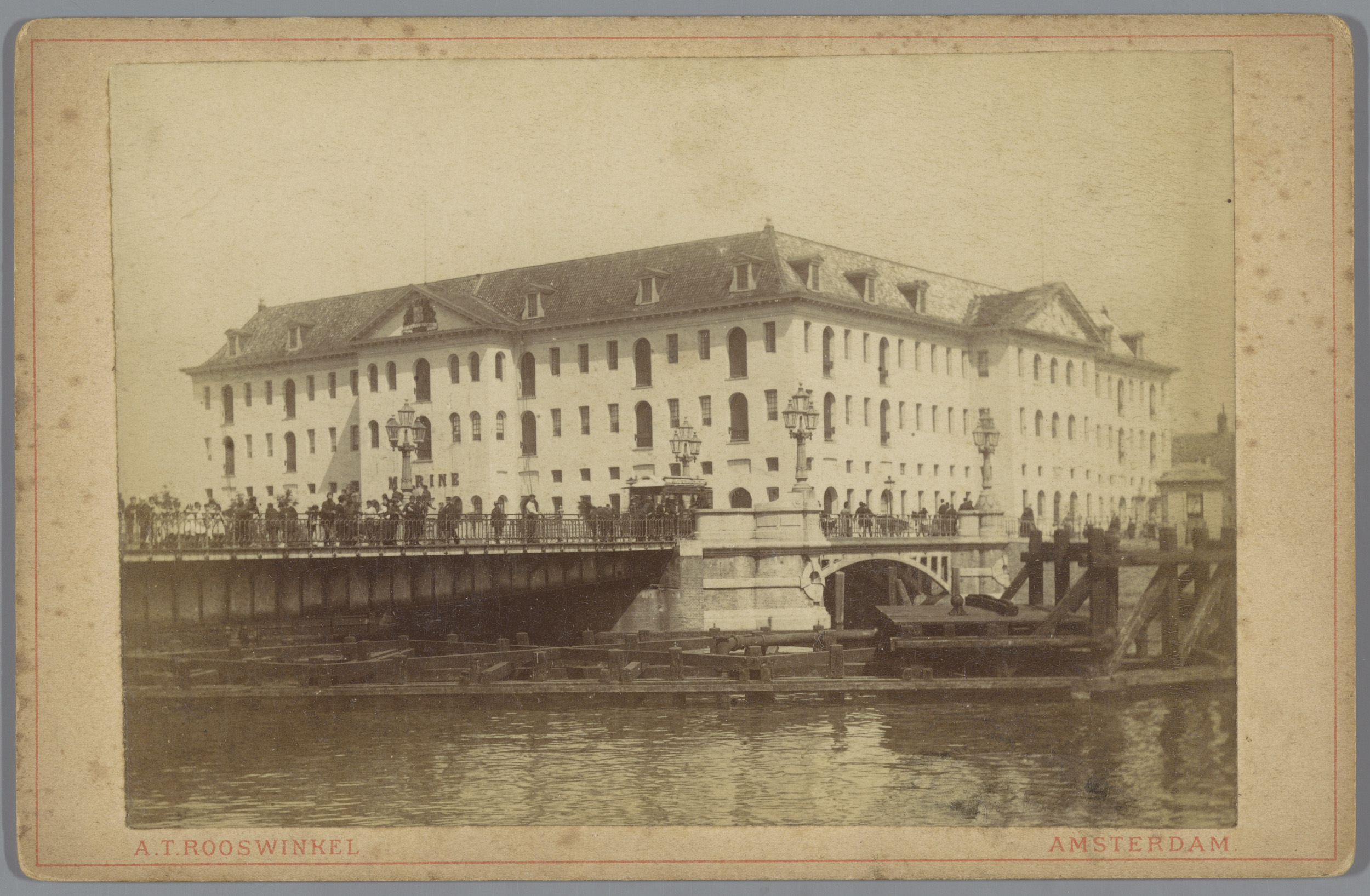 Gezicht op 's Lands Zeemagazijn in Amsterdam