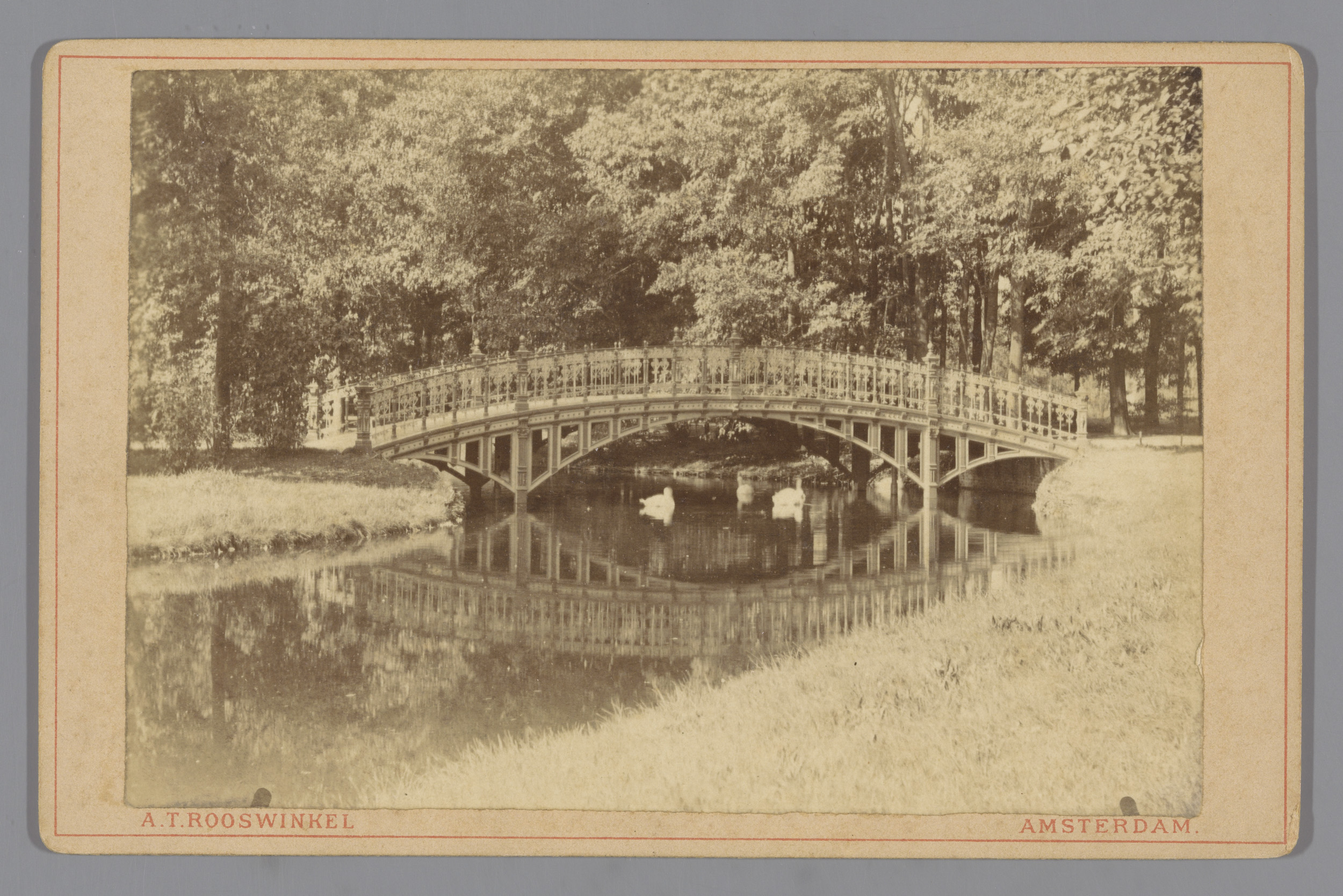 Gezicht op een brug in het Vondelpark te Amsterdam