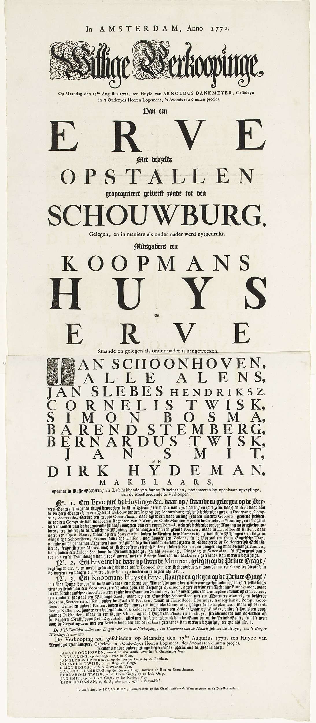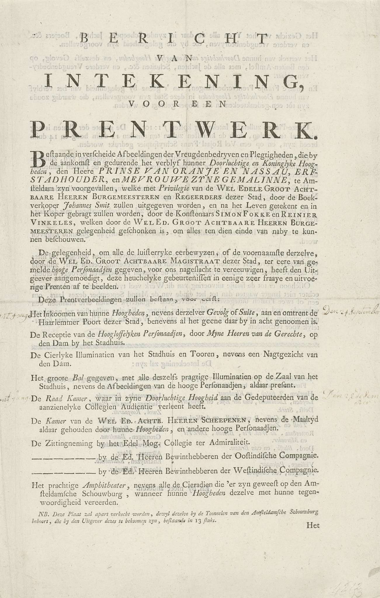 Bericht van intekening voor de prentserie van de inh...