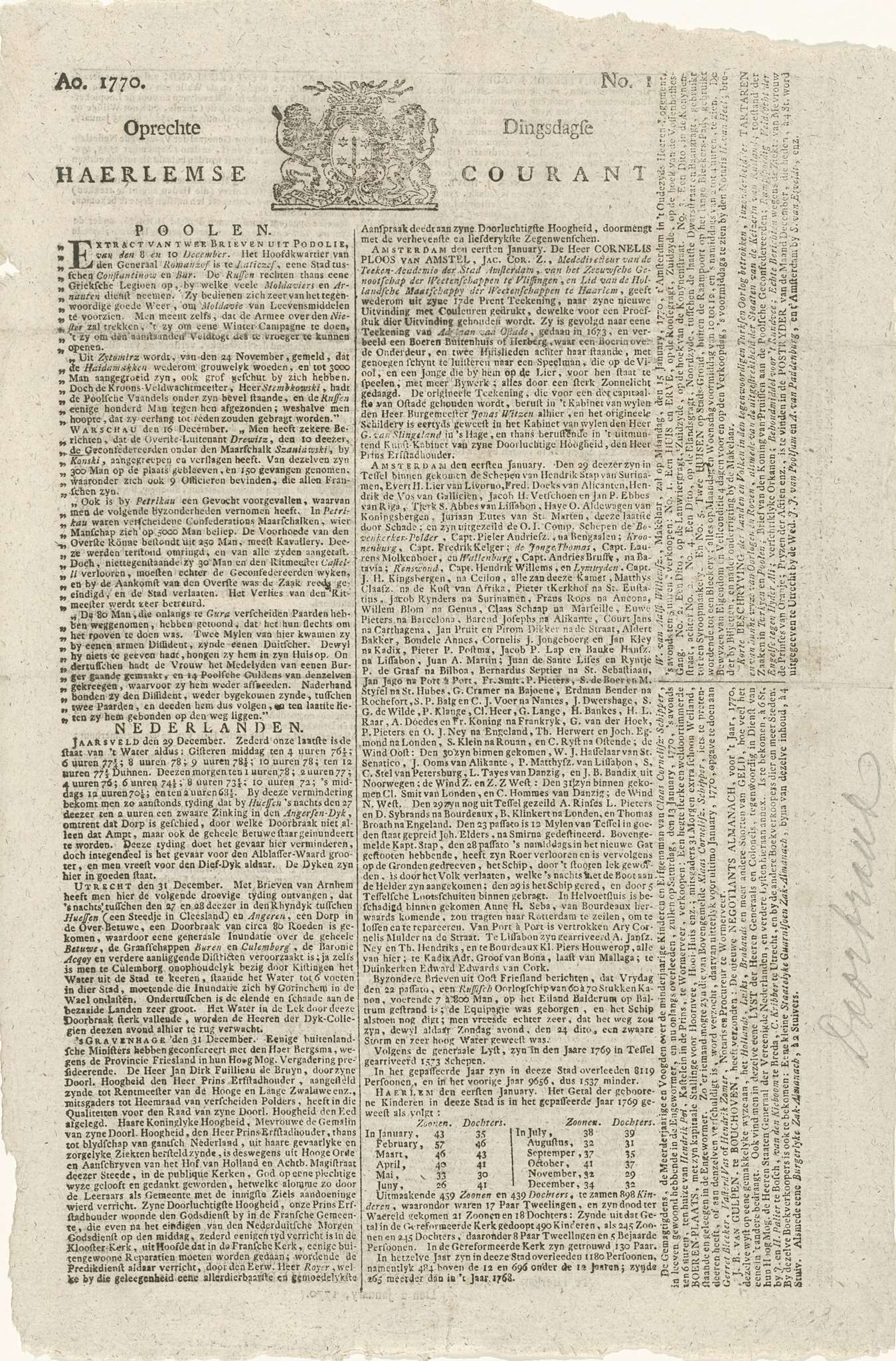 Oprechte Saturdagse Haerlemse Courant van 6 januari ...