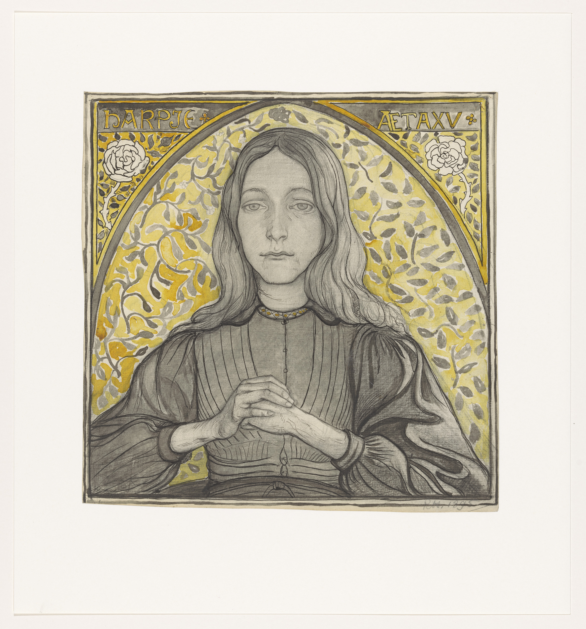 Kop van de geblinddoekte Justitia; ontwerp voor figu...