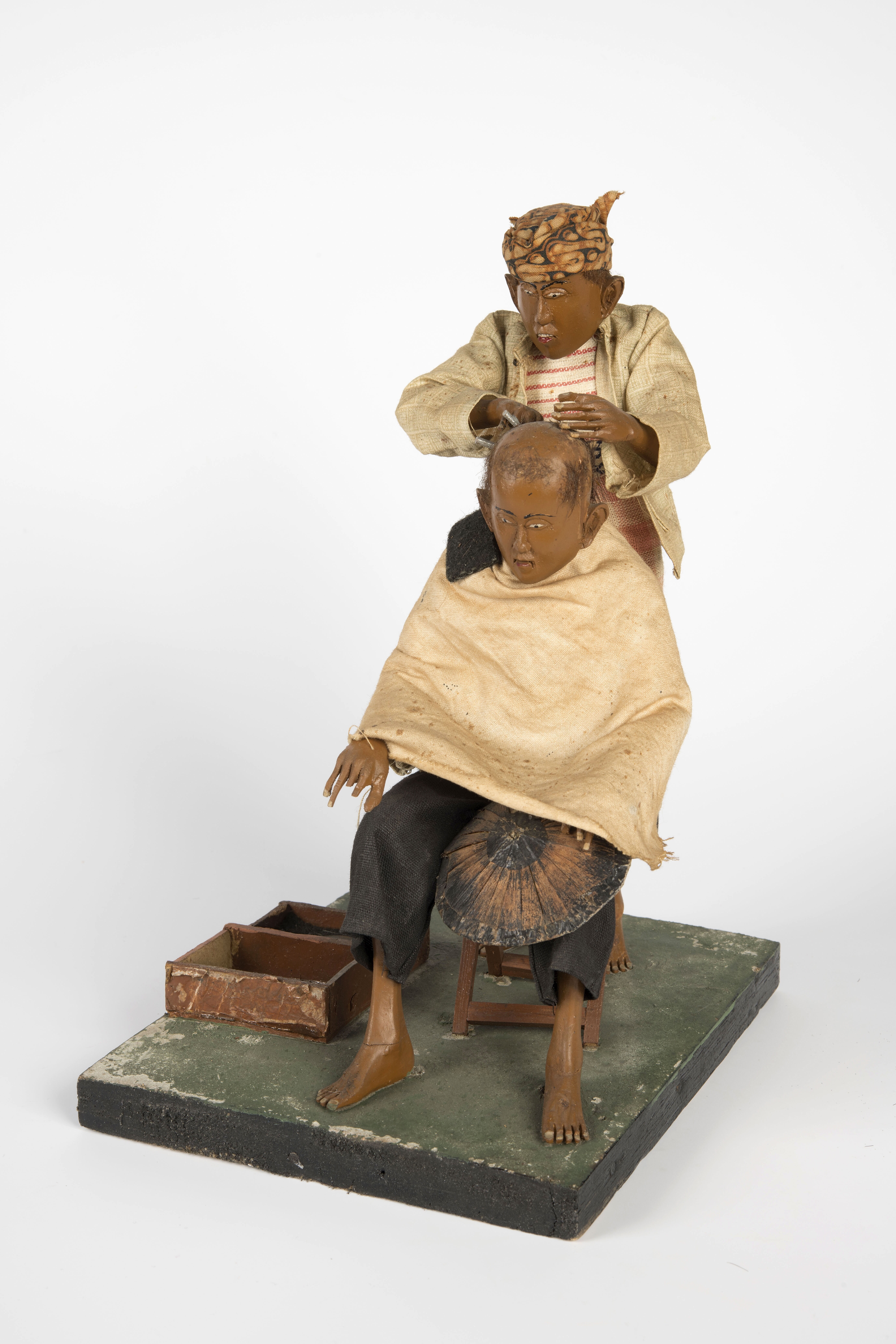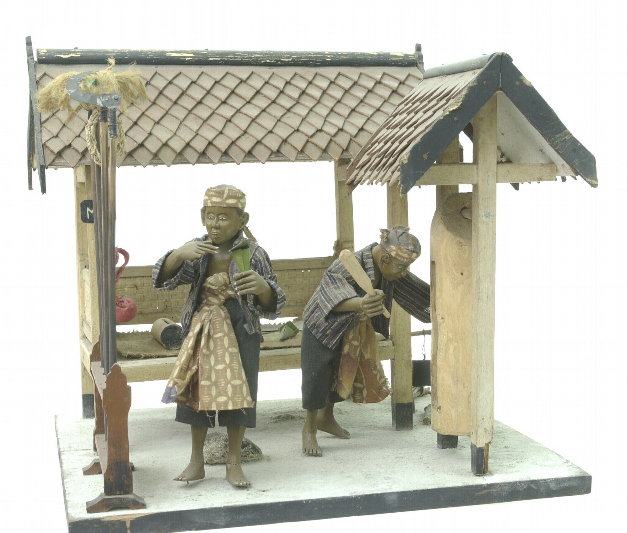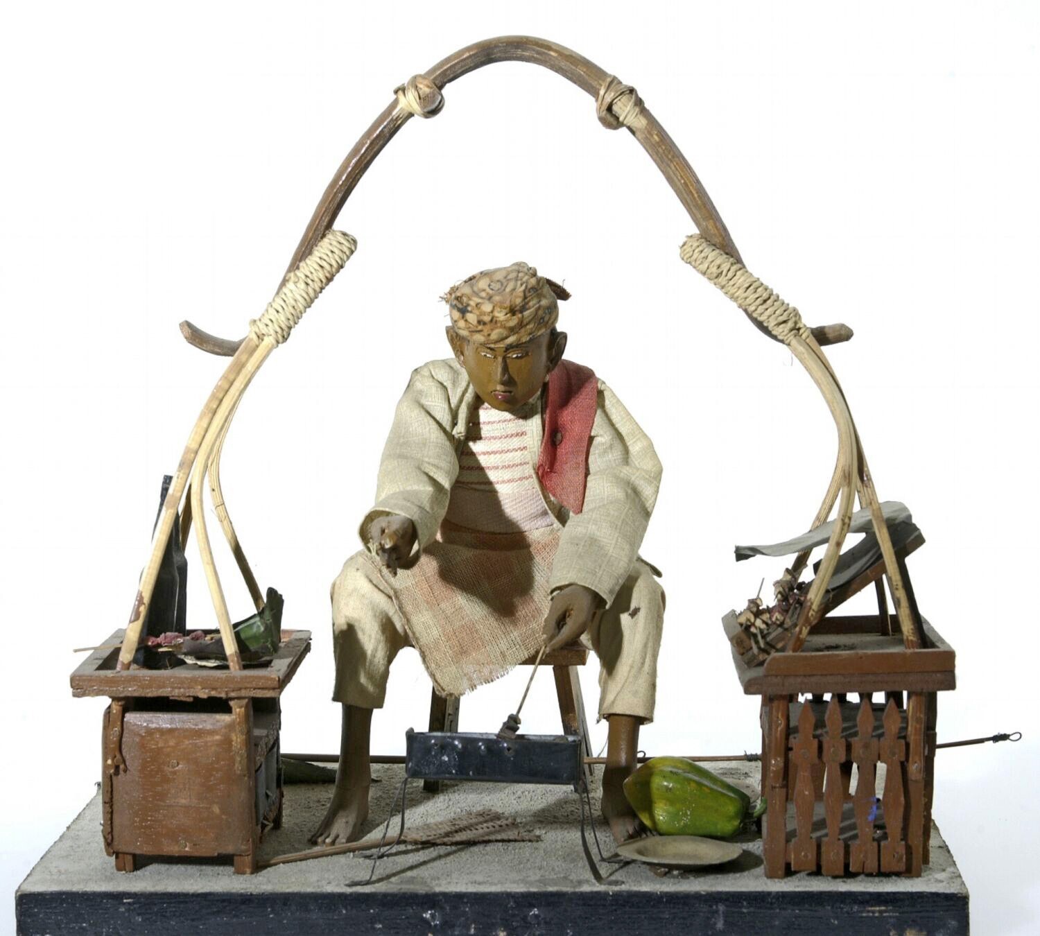 Model van een sotoverkoper in een stalletje