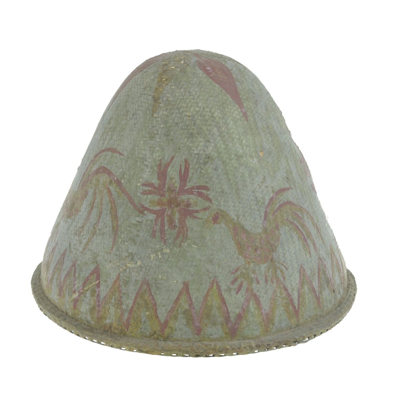 Gevlochten en beschilderde vissershoed van bamboe, v...