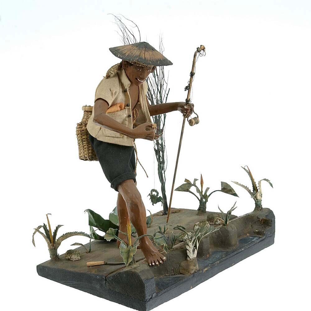 Model van een sawahvisser met hengel