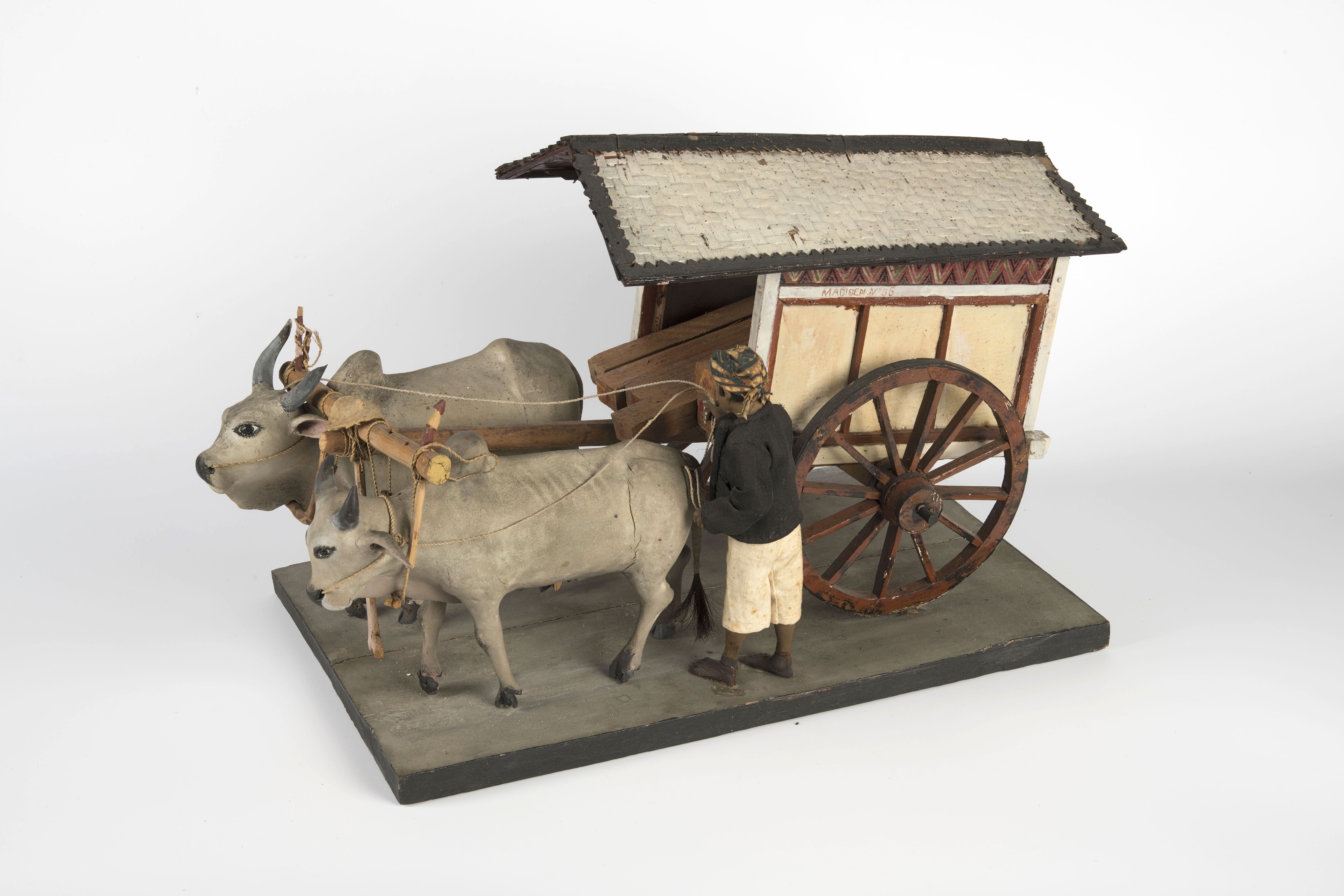 Model van een transportkar getrokken door 2 stieren
